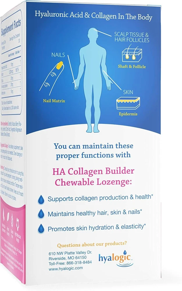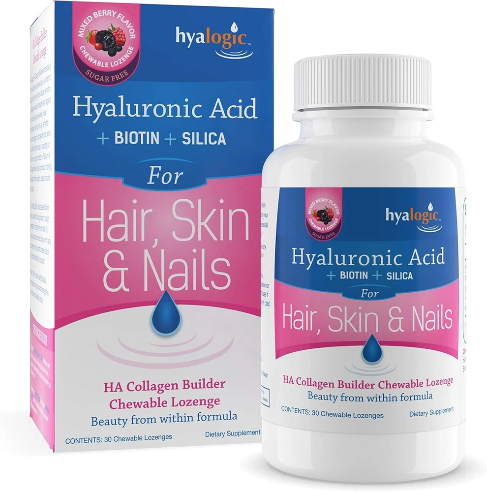 Hyalogic Hair Skin & Nails Hyaluronic Acid Collagen Builder – Delicious Berry Flavored Collagen Boost Chewable Lozenges – Sugar Free Vegan Collagen Ideal to Enhance Your Natural Beauty – 30 Count