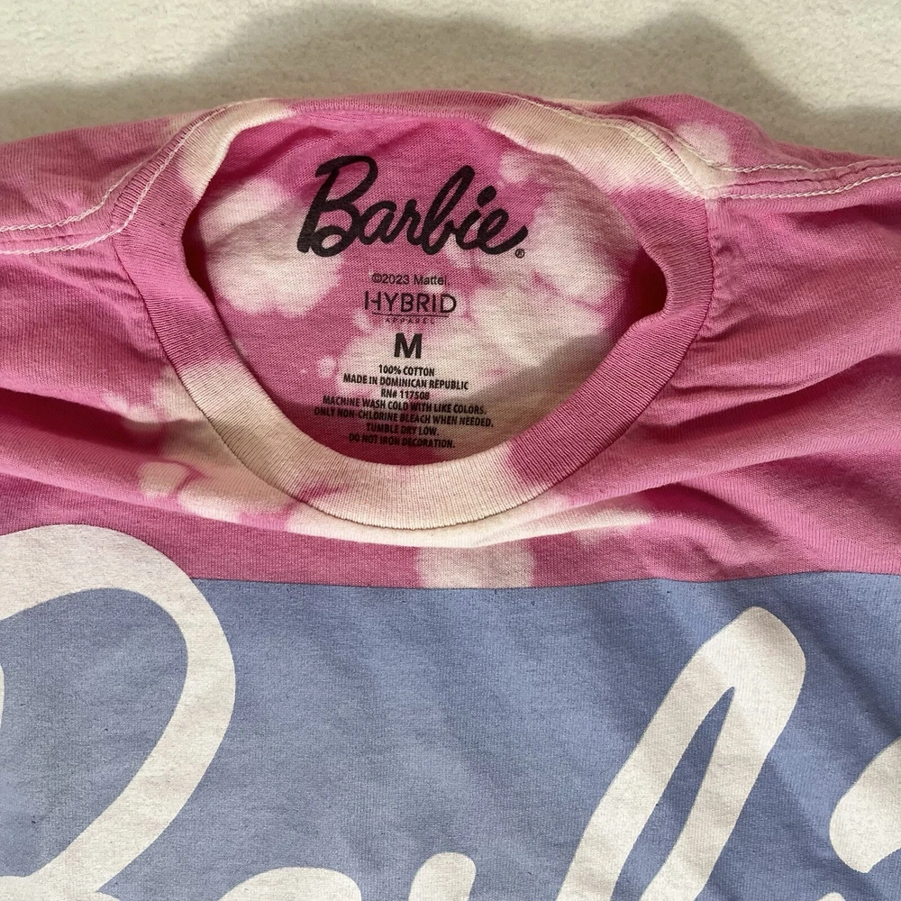 *** Minor FLAW *** See Last Photo *** Bottom of front *** Hybrid Apparel brand Barbie Graphic T-Shirt Unisex Size Medium Short Sleeve, Crew Neck Pink Tie Dye Design Large Front "Barbie" graphic with red convertible car See photos for details, appearance, measurements and FLAW (last photo) Brand New Without Tags Buy It Now and Save $$ Inv#0485