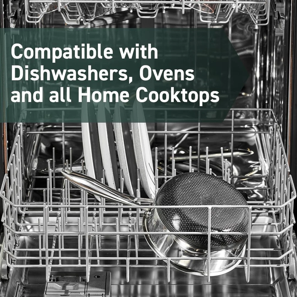 Hybrid Nonstick 1-Quart Saucepan with Tempered Glass Lid, Stay-Cool Handle, Dishwasher Safe, Induction Ready, Compatible with All Cooktops 's patented hybrid tech utilizes tri-ply construction – aluminum between two layers of stainless-steel - laser-etched with our hexagonal nonstick surface to deliver the searing power of stainless, durability of cast-iron and easy cleanup of nonstick. Sweet and petite, our Hybrid 1-Quart Saucepan is ideal for making a couple servings of hot chocolate, reducing simple syrups and compotes, melting butter, making gravy and reheating soup for one. Use your cookware on any home cooktop or stovetop, including induction. Every piece is also scratch-resistant, dishwasher-safe, and oven-safe up to 500°F. (Lids are oven-safe up to 400°F.) products that are sold by Cookware are backed by a satisfaction from manufacturer's defects. (Commercial and restaurant use excluded). Your purchase includes one 1 Quart Saucepan and one Tempered Glass Lid. The 1 Quart Saucepan measures approximately 6 inches in diameter, 3 inches in height and lbs in weight.