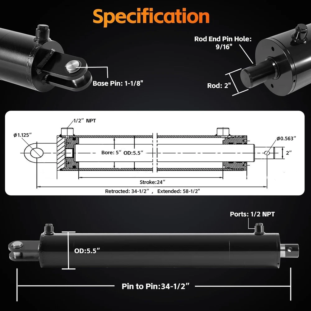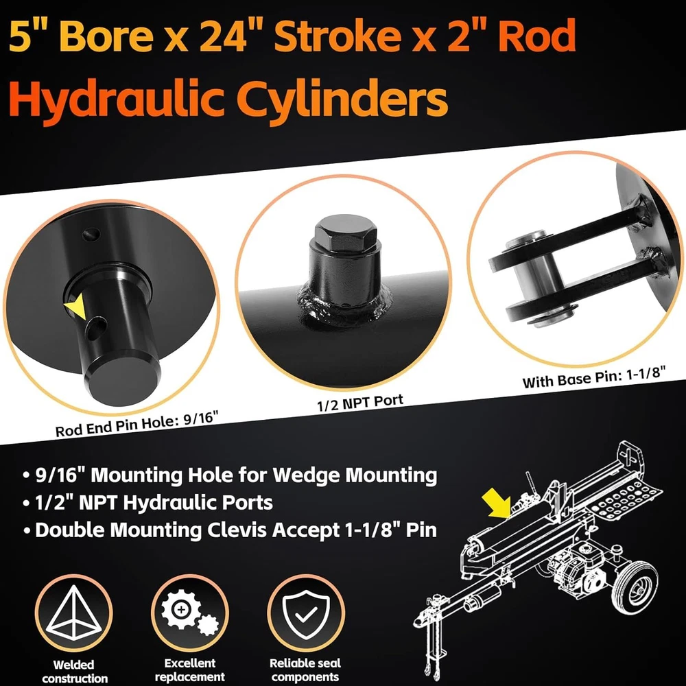 Features: 1. Application: 5"x24" Hydraulic Log Splitter Cylinder is designed for use on Log Splitters, compatible with Dirty Hand Tools, Tractor Supply Co (TSC), CountyLine, Huskee, MTD, Oregon, SpeeCo & SplitMaster Log Splitters, and many others. Log Splitter Cylinder 5" Bore x 24 " Stroke x 2" Rod. 2. Specification: Bore: 5" ,Stroke: 24" ,Rod: 2", Retracted: 34-1/2", Extended: 58-1/2" ,Ports: 1/2 NPT, Base Pin: 1-1/8", Rod End Pin: 9/16". The rigid replacement hydraulic cylinder operates at up to Pressure 3500 PSI, Column Load 58,900 LBs. VISA-POWER 5"x24" Hydraulic Cylinders Log Splitter Cylinder, Universal Hydraulic Cylinder 5" Bore 24 inch Stroke, Heavy Duty Double Acting Hydraulic Cylinder (5x24) Features: 1. Application: 5"x24" Hydraulic Log Splitter Cylinder is designed for use on Log Splitters, compatible with Dirty Hand Tools, Tractor Supply Co (TSC), CountyLine, Huskee, MTD, Oregon, SpeeCo & SplitMaster Log Splitters, and many others. Log Splitter Cylinder 5" Bore x 24 " Stroke x 2" Rod. 2. Specification: Bore: 5" ,Stroke: 24" ,Rod: 2", Retracted: 34-1/2", Extended: 58-1/2" ,Ports: 1/2 NPT, Base Pin: 1-1/8", Rod End Pin: 9/16". The rigid replacement hydraulic cylinder operates at up to Pressure 3500 PSI, Column Load 58,900 LBs. 3. Universal Hydraulic Cylinder: Heavy Duty Double Acting Cylinder is suitable for the double-ear mounting clevis on many wood splitting applications, and fits in different types of log splitting equipment such as gas log splitters, electric log splitters, 3 point tractor log splitters and skid steer log splitters. 4. Replacement: To replace the worn or damaged hydraulic cylinders for your log splitter, the new log splitter cylinder works smoothly when retracting or extending, making it a clinch with splitting firewood. It is a perfect replacement for 5 inch log splitter cylinder. 5. Top Quality: Heavy duty Log Splitter Cylinder with welded construction and reliable seal components for excellent performance. The cold-drawn honed tube, hard chrome plated rod, high tensile steel piston, and cast iron threaded gland can be resistant to rust, and corrosion to work in severe conditions. Includes rod seals: U-cup polyurethane seal with O-ring, POM-C wear rings polyurethane wiper and component compact piston seals. 6. Satisfaction Guarantee: If you are not satisfied with this 5"X24" Log Splitter Cylinder, simply return it for a full refund within 30 days. Please feel free to contact us if you have any questions. Product Included: 1Pcs 5"X24" Log Splitter Cylinder Heavy duty Log Splitter Cylinder with welded construction and reliable seal components for excellent performance. The cold-drawn honed tube, hard chrome plated rod, high tensile steel piston, and cast iron threaded gland can be resistant to rust, and corrosion to work in severe conditions. Includes rod seals: U-cup polyurethane seal with O-ring, POM-C wear rings polyurethane wiper and component compact piston seals. Item Specifics Brand : VSSHOP Type : Hydraulic Cylinders Log Splitter Cylinder Warranty : 1 Year Features : Easy to Replace Style : Modern Size : 5" Bore x 24 " Stroke x 2" Rod MPN : VSQP1888 Item Weight : 40.55 kg Color : Black Material : Steel Payment 1. Payment methods accepted: Payoneer . Our Payoneer account allows you to pay by credit card, debit card and your paypal balance. 2. All major credit cards are accepted through our secure payment processor Payoneer. 3. We ship items to Your Ebay address.Please make sure your Ebay address is correct before you pay, cause it cannot be changed once the order shipped out. Shipping 1. Item will be shipped out within 1-2 business day after clear payment received. 2. Please make sure shipping address on your Ebay account is correct & up-to-date. 3. All of our items are shipped from our US warehouse. 4. Please feel free to contact us by email if you cannot get your order in time. Please read the shipment and payment detail carefully before you bid. Returns 1. Return to us within 30 days from the delivery date for exchange or refund. Refund will be given as Money back or item exchange (buyer's choice). 2. Return shipping fee is the responsibility of buyer unless the return is a result of our mistake. And all non seller mistake returns for refund are subject to 20% re-stocking fee. 3. If you need return, please contact our customer service representative, let us know the detailed problem and send us some pictures for confirmation. Contact Us Please contact us via ebay using"Contact member". We will respond within 1 business day or less.Thank you for your understanding. Our office hours is as below : - 9:00 a.m. to 6:00 p.m. (GMT +8) of Monday to Friday - 9:00 a.m. to 1:00 p.m. (GMT +8) of Saturday And our office is closed on Sunday and public holidays (Hong Kong) We apologize for the late reply during the holidays.Please contact us via ebay using"Contact member". We will respond within 1 business day or less. Please include your ebay item number or order number in all communications. VISA-POWER DESCRIPTION PAYMENT SHIPPING RETURN POLICY CONTACT US Shop Category Store Home New Arrival ! DIY Blacksmith Accessories Outboard Boat Accessories ATV UTV Truck Accessories Caterpiller CAT Accessories DD/GM/LS Engine Parts Volvo & Mack Accessories Oil Filter Wrench Caps Car Accessories Jeep Wrangler Accessories Ford Mustang/F- Accessories Dodge Accessories Chevrolet Accessories Motocycle Accessories Tools Peterbilt Accessories Lawn Mower Parts Other High Recommended Automotive Part Tool 61850 Truck Hub Seal Installer Set for Class 7 & 8 M Duty & Road Trucks Trailers USD 104.95 Knife Making Tongs Bladesmith Tong Set & Blacksmith Hammer 1.5 kg Forge Tools USD 131.97 3163021 3163069 For Cummins ISX QSX Timing Injector Cam Gear Puller Tool Kit USD 94.99 60" LED Tailgate Strip Light Bar Reverse Brake Turn Signal Light for Car Truck USD 15.97 Hot Item ECX270861 Bottom Mount Pressure Gauge for Hayward Sand D.E. Pool Filter 60 PSI USD 13.19 60" LED Tailgate Strip Ligh
