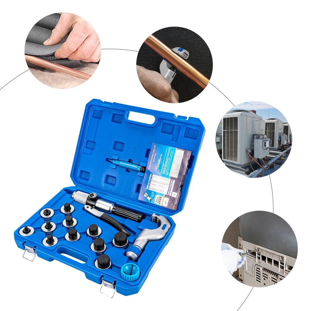 Specifications Material: 45#Steel, PVC Color: Blue, Grey, Black Model Number: CT-300B-A-L Cutter Model: CT-650 Driving Mode: Manual Drive Number of Kits: 1 Number of Expansion Heads: 11 Compatible Tube Size: 10mm-42mm/0.4-1.7in Gross Weight: 6.3kg/13.9lbs Carrying Case Size: 42.7×31.4×8.7cm/16.8×12.4×3.4in Package Size: 44×39×28cm/17.3×15.4×11in Package Included 1* Tube Expander Kit 1* Carrying Case 1* English Manual Hydraulic Expander Tool Kit Tube Cutter Expanding Copper Tube Expander 10mm-42mm Application It's suitable for expanding 0.4 to 1.7in copper, aluminum, titanium, and stainless steel tubes. How to Use 1.Cut the Cu tubing, leaving a clean and even edge. 2. Scrape the wall burr. 3. Fit the tube head. 4. Tighten the oil return switch. 5. Repeatedly operate the active handle. 6. Connect the tubes after completing the expansion. Specifications Material: 45#Steel, PVC Color: Blue, Grey, Black Model Number: CT-300B-A-L Cutter Model: CT-650 Driving Mode: Manual Drive Number of Kits: 1 Number of Expansion Heads: 11 Compatible Tube Size: 10mm-42mm/0.4-1.7in Gross Weight: 6.3kg/13.9lbs Carrying Case Size: 42.7×31.4×8.7cm/16.8×12.4×3.4in Package Size: 44×39×28cm/17.3×15.4×11in Package Included 1* Tube Expander Kit 1* Carrying Case 1* English Manual Notes Please allow the slight color difference caused by the shooting light and 1-3cm error due to manual measurement, and make sure you do not mind before you order. Payment Delivery details Terms of sales About us Contact us Payment We accept ebay payment 。 Fees such as import duties, taxes are not included in the item price or shipping costs. These charges are the buyer's responsibility. Delivery details Shipping: 2-9 working days to: USA Terms of sales We maintain high standards of excellence and strive for hundred percent customer satisfaction. Feedback is very important to us. We hope that you contact us immediately before you give neutral or negative feedback, so that we can address your concerns. It is impossible to address issues if we do not know about them! About us Your satis faction is our ultimate goal. We work hard to earn your trust and future business. Our certified technicians have tested each item before shipping. The unit comes with 1 year limited warranty on all manufacturing defects. a) If you receive a defective item, you may return it or ask for a discount. Please contact us within 14 days after you receive the package. b) What you returned must be intact and in its original packaging as re? u. Customer is responsible for shipping costs of the returned item. c) We will cover the cost of shipping back t with the shipping rate indicated in the registration page. We will send you a new unit or refund the full payment you paid. Thank you. Contact us Business Hour Business Hour: Monday To Friday: 8:30 AM to 5:00 PM (Beijing China time) Due to time zones, our reply to your questions may not be immediately. But within above working time, we will reply your email within 24 hours. If it's non-workdays, please kindly be patient and wait till Monday. Please contact us with ebay message. Please feel free to contact us if you have any questions. Monday To Friday: 8:30 AM to 5:00 PM (Beijing China time) Due to time zones, our reply to your questions may not be immediately. But within above working time, we will reply your email within 24 hours. If it's non-workdays, please kindly be patient and wait till Monday. Please contact us with ebay message. Please feel free to contact us if you have any questions. On Feb 7, 2025 at 18:51:29 PST, seller added the following information:
