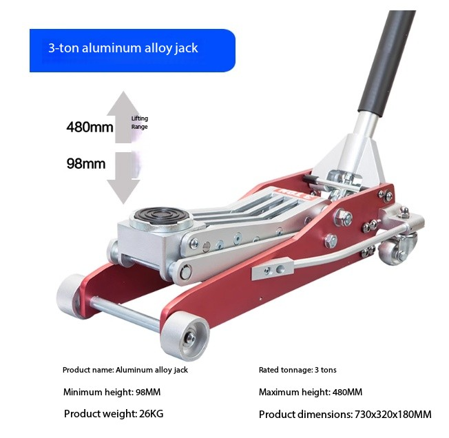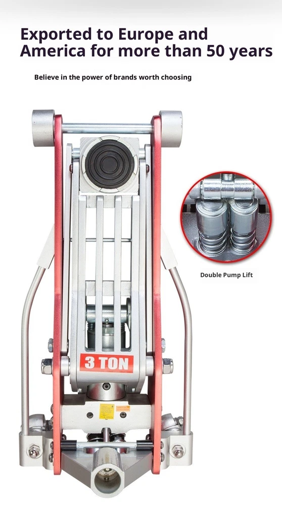Hydraulic Jack for Auto Repair Shops, 3-Ton Capacity for Passenger Cars Precautions 1. Never overload the equipment. 2. Use only on hard, level surfaces. 3. Use solely for lifting; never as a support tool. 4. Never work beneath objects supported only by the jack. 5. Failure to follow these precautions may result in personal injury or property damage.