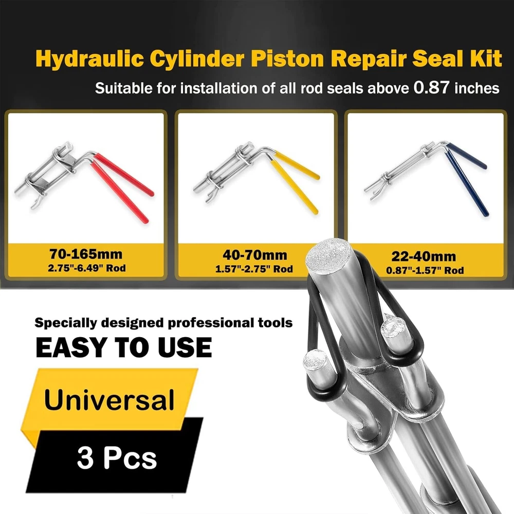3 Pcs/Set Hydraulic Cylinder Piston Repair Seal Kit,Hydraulic Seal Installation Tools, U-Cup Rod Seal Installation Tool Kits Upgraded Seal Twistor Install Tool Set Universal J05321 USE PROCESS:Step 1, place the two thin feet of the tool inside the hydraulic ring. Step 2, rotate the handle so that the hydraulic ring is folded in the shape of an omega. Step 3, put it into the hydraulic cylinder and release the handle. PACKAGE COMBINATION:Includes 3 sizes to cover just about any rod seal installation job from 0.87" up.Small for rod diameters 22-40mm (0.87" - 1.57" ROD) gland hole, 6mm cross section max. Medium for rod diameters 40-70MM (1.57" - 2.75" ROD) gland hole, 8mm cross section max. Cross section max. Large for rod diameters 70-165MM (2.75" - 6.49" ROD) gland hole, 10mm cross section max. PERFECT FUNCTION:Rod seal install tool set is a quick and safe installation tool for flexible rod seals. Installing automotive ship hydraulic cylinders, bucket cylinder inner seals or O-rings or other inside types of seals, It is very simple by means of the rod seal installation tool set!Making smaller size than gland hole by turning seal to omega shape can avoid most of damages. PROFESSIONAL TOOLS:Specially designed, the colored handle is added to the handle of the hydraulic maintenance tool set to facilitate identification, avoid sliding during use, and make the use more comfortable! 100% SATISFACTION GUARANTEE-Your satisfaction is our top priority, We strive to provide customers with quality services.If you're not 100% satisfied with this tool set, simply return it for a full refund in 30 days. Premium Support & 12-Month Warranty. Payments Methods We accept PayPal payment only. About Us Welcome to factory-international , the home of High Quality Auto Parts. Repairing vehicles is our business with many years experience. We committed to provide the highest quality products, competitive prices and service for our customer. We make a variety of professional tools, high quality Auto Parts, also decoration to simplify your auto repairing work. We carry large stocks for immediate supply as well as a wealth of experience & skill to advise on any questions about technical data. Shipping Policy Orders will be ship out within 1-2 business days after payment has cleared. Orders from Saturdays, Sundays or holidays will process on next business day and will be ship within 24 hours. Please allow 10-30 days for international deliveries. Some shipments could take longer subject to your local customs authorities. United states 2-5( days) Shipping Method All our items are shipped from the United States and the package will be free of charge for Express Shipping via USPS , UPS or others. Absolutely Fast and Safe! Return & Warranty 1.if you're not 100% satisfied with our item, simply return it for a full refund in 30 days. 2.Leave a message note in returned box quoting your item(s) ID and buyer ID. 3.All returned products must be in their original condition and package. Unfortunately, if products have been assembled or modified, we cannot take them as returns. 4.It is important that we know when your return is expected. Please save your return tracking number or post receipt, and email it to us. We need this in case there are any issues during transit. 5.Refund will only be issued upon our receipt of the returned parcel. Please allow 2 working days for us to process with your return. We support 12 months’ Warranty . If you have any problems about our products, kindly please feel free to contact us . About Reply If you have any questions, please feel free to email our service specialists 24 Hours a Day, 7 Days a Week, and we will reply you ASAP. If no response within 24 Hours, please check the spam of mail box or kindly re-send it to us. About Feedback Please contact us before leaving Negative feedback or open any disputes on PayPal and eBay if you are not satisfied our service or products. Good communication is helpful for both of us to resolve any problems and issues. We work hard to make sure EVERY CUSTOMER 100% SATISFIED and resolve any problem for you and always leave positive feedback to all our customers.