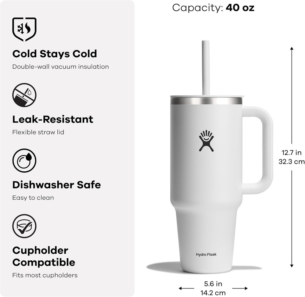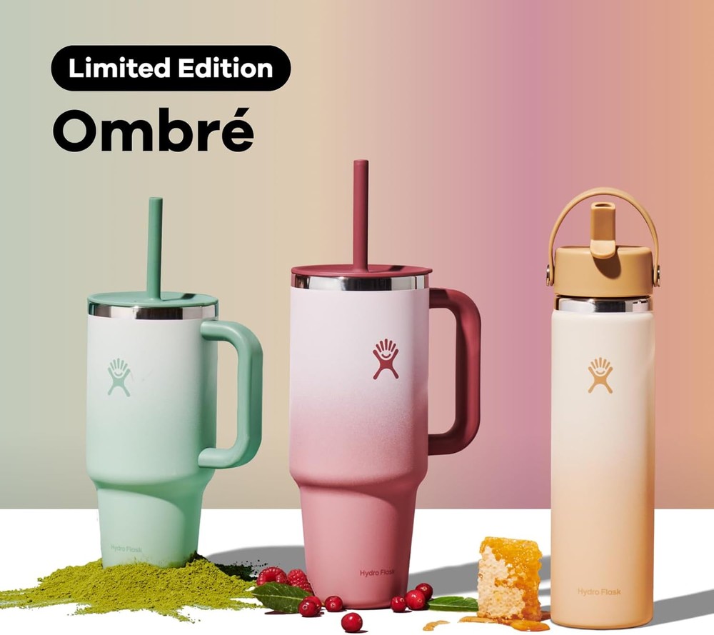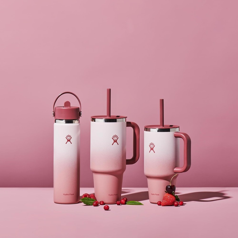 Hydro Flask Travel Tumbler Stainless Steel 40 Ounces, Bayberry Ombre Product Details Brand: Hydro Flask Capacity: 2.5 Pounds Color: Bayberry Ombre Recommended Uses For Product: Water Special Feature: Vacuum Insulated Age Range (Description): Adult Model Name: All Around Travel Tumbler Item Weight: 0.67 Kilograms Theme: Ombre Material: Stainless Steel Number of Items: 1 Included Components: Tumbler Product Care Instructions: Hand Wash Recommended, Dishwasher Not Recommended Cap Type: Straw Cap With Lid: Yes Is Dishwasher Safe: No Is Microwaveable: No Is Oven Safe: No UPC: 810096858498 Manufacturer: Hydro Flask Item Package Dimensions L x W x H: 13.23 x 5.08 x 4.92 inches Package Weight: 0.67 Kilograms Brand Name: Hydro Flask Suggested Users: unisex-adult Style: 40 Oz Size: 40 Ounces Brand: Hydro Flask Capacity: 2.5 Pounds Color: Bayberry Ombre Recommended Uses For Product: Water Special Feature: Vacuum Insulated TempShield️ double-wall vacuum insulation protects temperature for hours Snug, secure, splash-resistant Press-In Straw Lid Flexible straw Strong ergonomic handle Fits most cupholders
