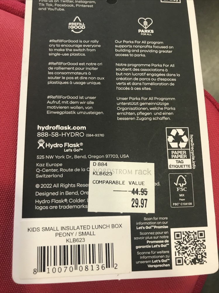 Material: Polyester Style: Small Color: Peony Number of Compartments: 1 Personalize: No Item Width: 10.65” Model: Hydro Flask Kids Small Insulated Lunch Box Features: Easy Clean, Reusable, With Handle Type: Insulated Lunch Box Item Height: 10.65” Pattern: Solid Number of Items in Set: 1 Set Includes: Lunch Box UPC: 810070081362 Shape: Square Country/Region of Manufacture: China Theme: Food Department: Kids MPN: KLB623 Brand: Hydro Flask gtin13: 810070081362