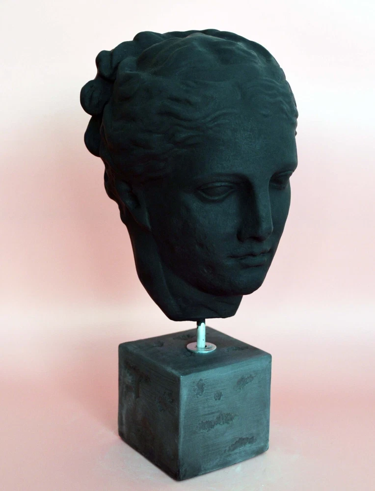 HYGIEIA HEAD BUST Hygieia was the goddess of health, healing and wellbeing. She was a daughter and attendant of the medicine-god Asklepios (Asclepius), and a companion of the goddess Aphrodite. Her sisters included Panakeia (Panacea) (Cure-All) and Iaso(Remedy). Hygieia's name gives us our word "hygiene". The original marble head, currently in the National Museum in Athens, was found in the Temple of Apollo at Tegea and is probably the work of the 4th century sculptor Skopas. Please be aware that, due to the fact that our products are either individually cast, carved, hand painted and hand finished, there will inevitably be minor variations in size, colour and texture.(B309-B) Details: Condition: New, Handmade in Greece Height: 26 cm(10.2 inches) Width: 11 cm(4.3 inches ) Weight: 1.4 Kg Material: Casting stone ********
