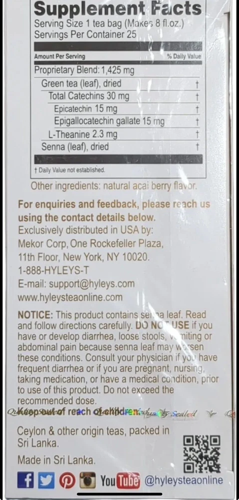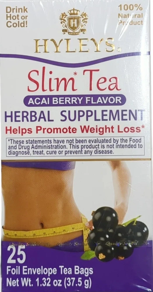 Hyleys Slim Tea Acai Berry Flavor Weight Loss 25 Tea Bags Expiration 02/2026.