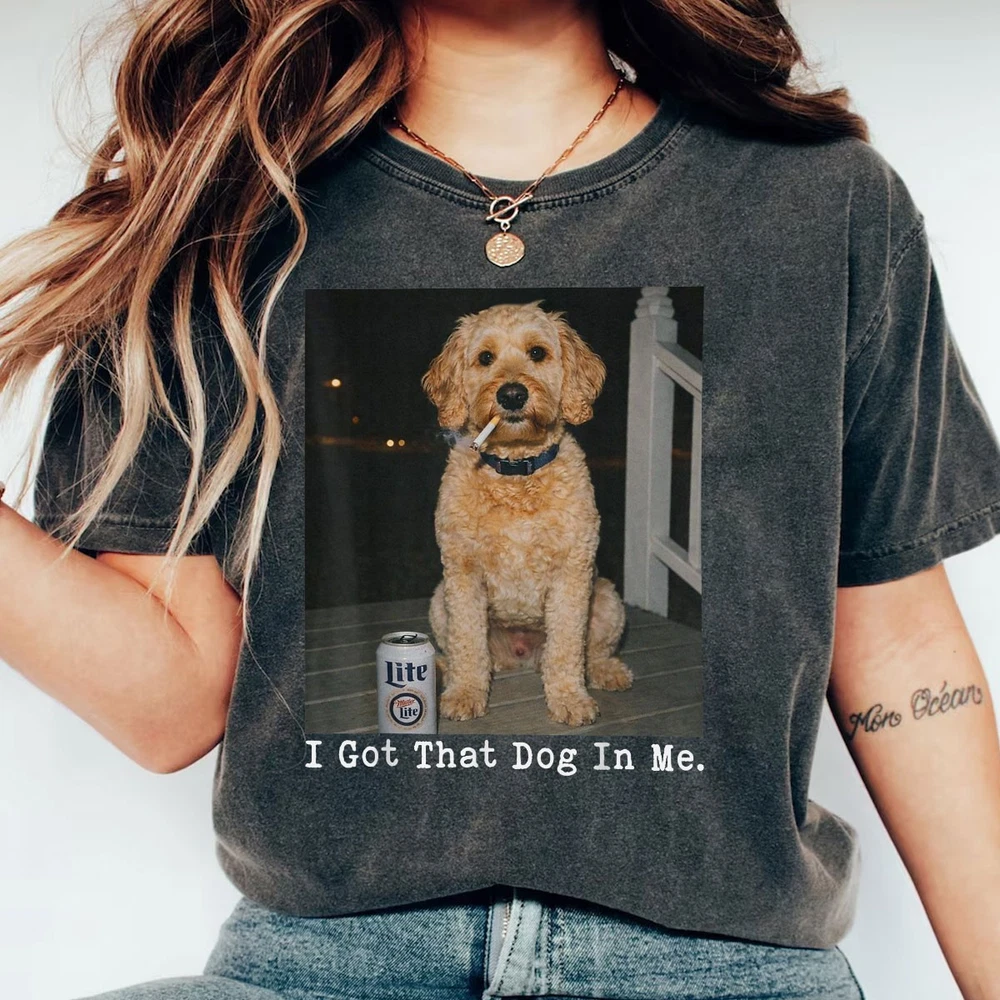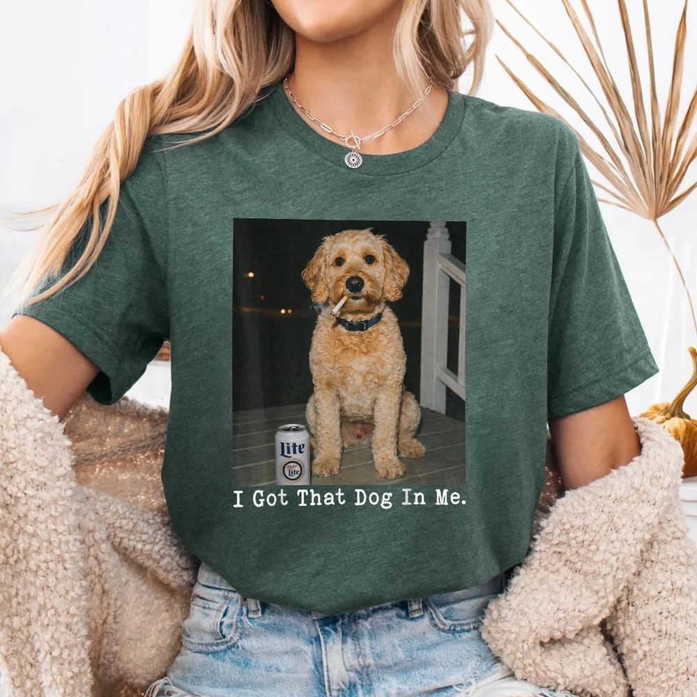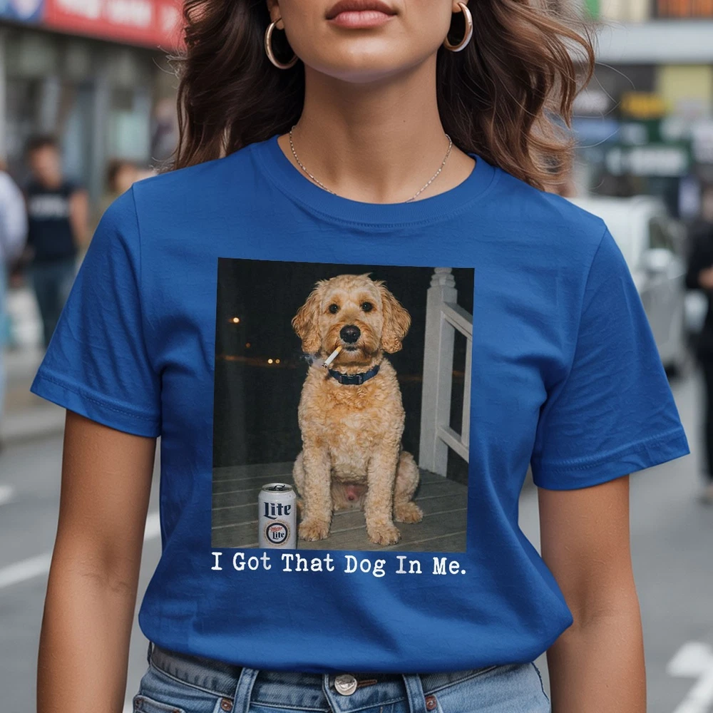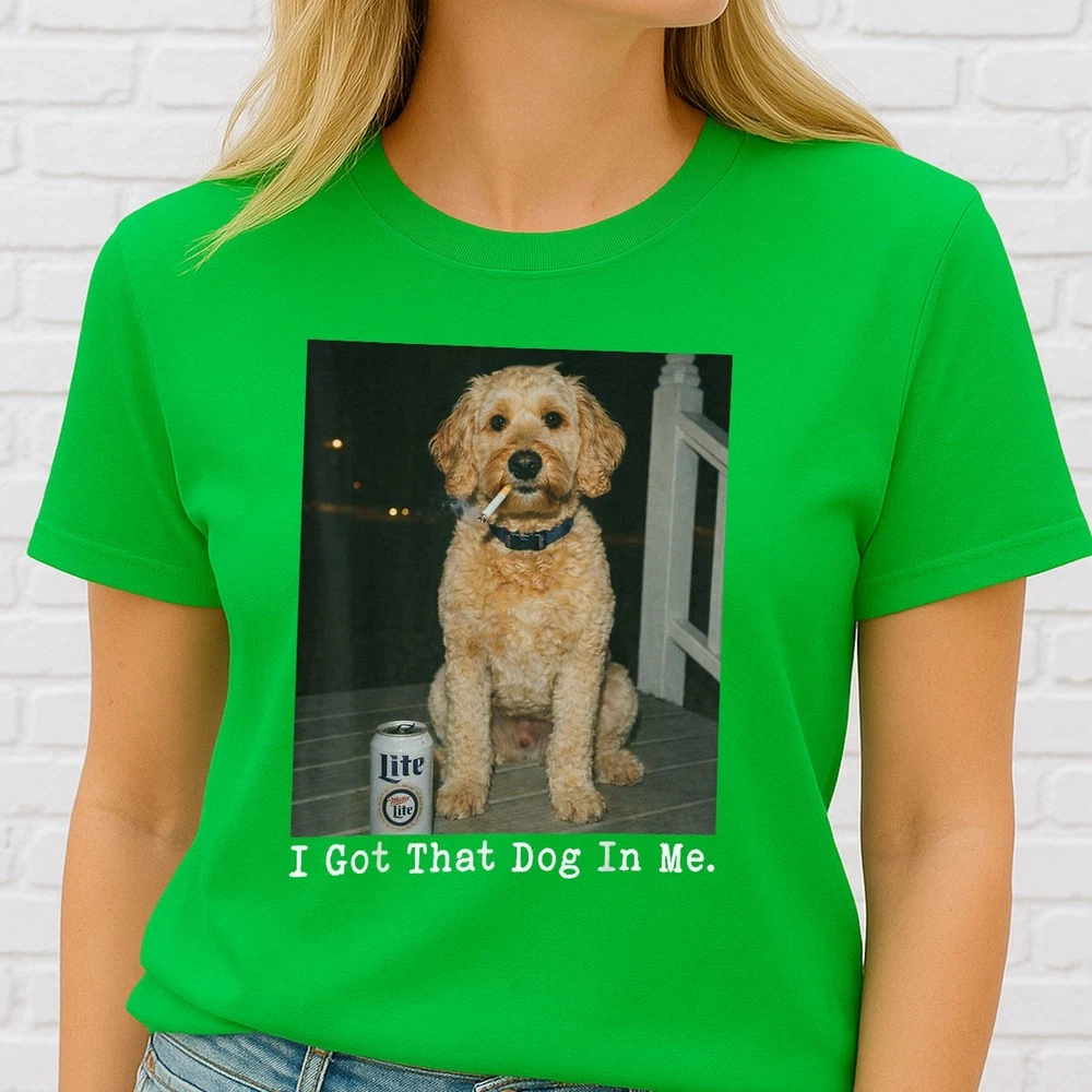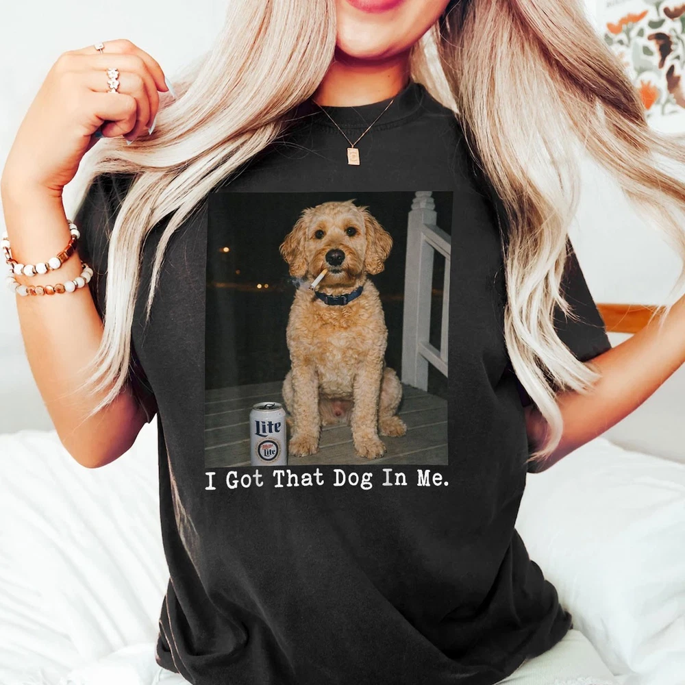 I GOT THAT DOG IN ME FUNNY GOLDEN DOODLE MEME SHIRT DOODLE MOM GIFT T-SHIRT Show off your pup pride with this i got that dog in me meme apparel. The perfect golden doodle mom gift shirt for anyone obsessed with their curly-haired best friend. This doodle lover tee combines humor with a cute aesthetic, making it a must-have for weekend walks or trips to the dog park. SIZE CHART (INCHES) Gildan Unisex T-Shirt Size S M L XL 2XL 3XL 4XL 5XL Body Length 28 29 30 31 32 33 34 35 Chest Width 18 20 22 24 26 28 30 32 Gildan Unisex T-Shirt: Classic-fit T-shirt made from durable 5.3 oz cotton fabric, offering comfort and long-lasting wear. Features ribbed collar, taped neck and shoulders, tear-away label, and low-impact OEKO-TEX certified dyes. Produced in WRAP-certified facilities. Bella+Canvas Unisex T-Shirt Size XS S M L XL 2XL 3XL 4XL 5XL Body Length 27 28 29 30 31 32 33 34 35 Chest Width 16.5 18 20 22 24 26 28 30 32 Bella+Canvas Unisex T-Shirt: Lightweight 4.2 oz Airlume combed and ring-spun cotton tee with a modern retail fit. Pre-shrunk, side-seamed, and exceptionally soft. Manufactured using sustainable processes, eco-friendly Blue Sign certified dyes, and solar-powered facilities. Comfort Colors® Unisex T-Shirt Size S M L XL 2XL 3XL Body Length 26.6 28 29.5 30.75 31.6 32.5 Chest Width 18.25 20.25 22 24 26 27.75 Comfort Colors® Unisex T-Shirt: Garment-dyed 6.1 oz ring-spun cotton shirt with a relaxed fit and vintage, lived-in feel. Soft texture, minimal shrinkage, and durable construction for everyday comfort. Gildan Unisex Long Sleeve Shirt Size S M L XL 2XL 3XL 4XL 5XL Body Length 28 29 30 31 32 33 34 35 Chest Width 18 20 22 24 26 28 30 32 Gildan Unisex Long Sleeve Shirt: Heavyweight 6 oz long sleeve shirt made with 100% U.S. cotton for superior comfort and print quality. Classic fit with ribbed cuffs, reinforced seams, tear-away label, and ethically produced in WRAP-certified facilities.