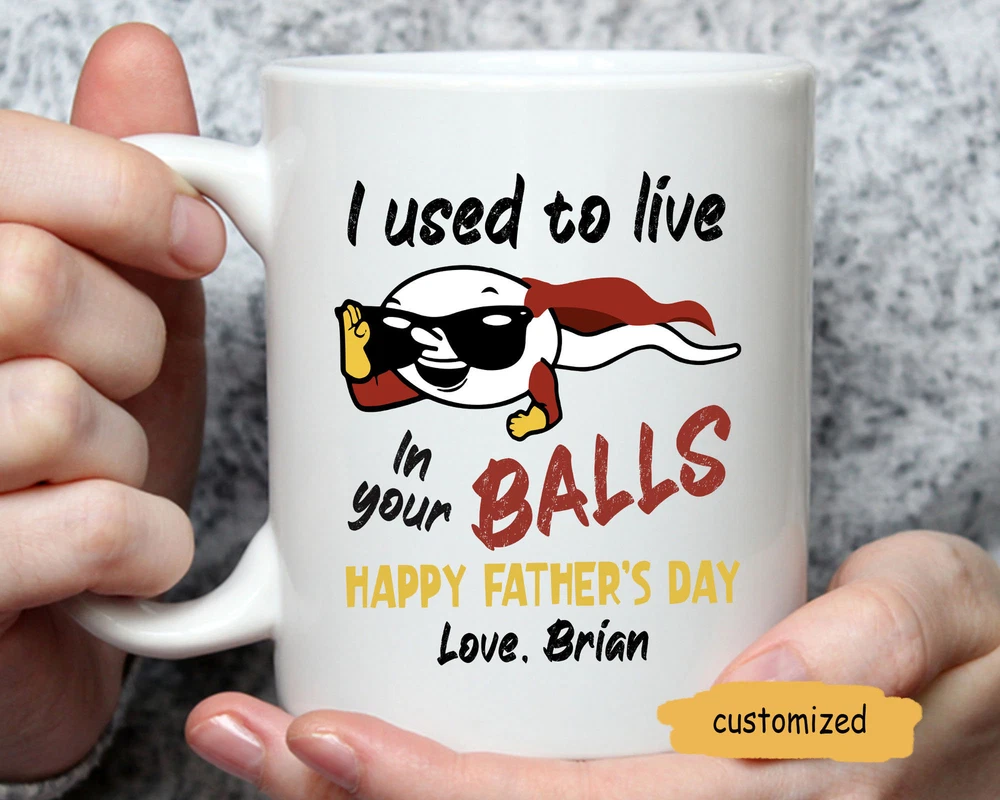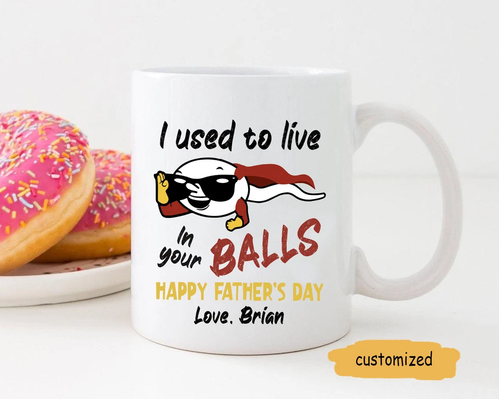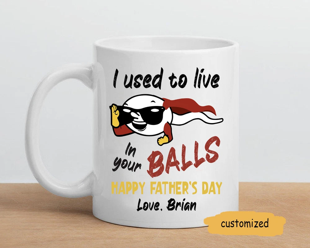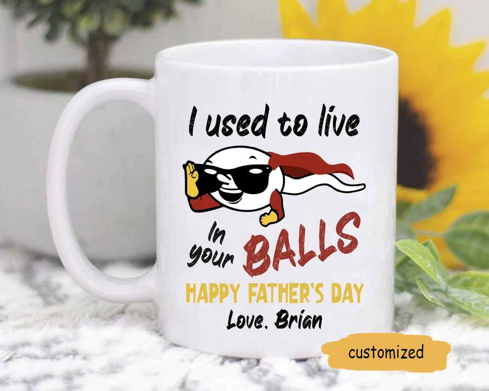 I Used To Live In Your Balls Personalized Mug Fathers Day Gift Funny Mug For Product Details.. This high quality 11oz. ceramic white mug has a premium hard coat that provides crisp and vibrant color reproduction sure to last for years. Perfect for all hot & cold beverages. The highest quality printing possible is used. It will never fade no matter how many times you wash it. Material: 100% Ceramic. Print both sides. Dishwasher and Microwave Safe. High Gloss + Premium White Finish. Printed in the U.S.A. Personalized & Custom. We support personalized and custom mug to add custom, when placing an order, you can add notes to the "order note" in shipping address section. Also you can contact us directly via message. Shipping Info. Ready to ship in 1 to 2 business days, All products are made-to-order and proudly printed in the United States. Shipped by USPS and DHL, You will receive your order in 5-7 days. Replace & Refund. All products are defective during shipping broken, chipped will be replaced free of charge. You are not satisfied with the product, we will refund 100% money to you. If any other issues arise, please do not hesitate to message, we would be more than happy to assist you.
