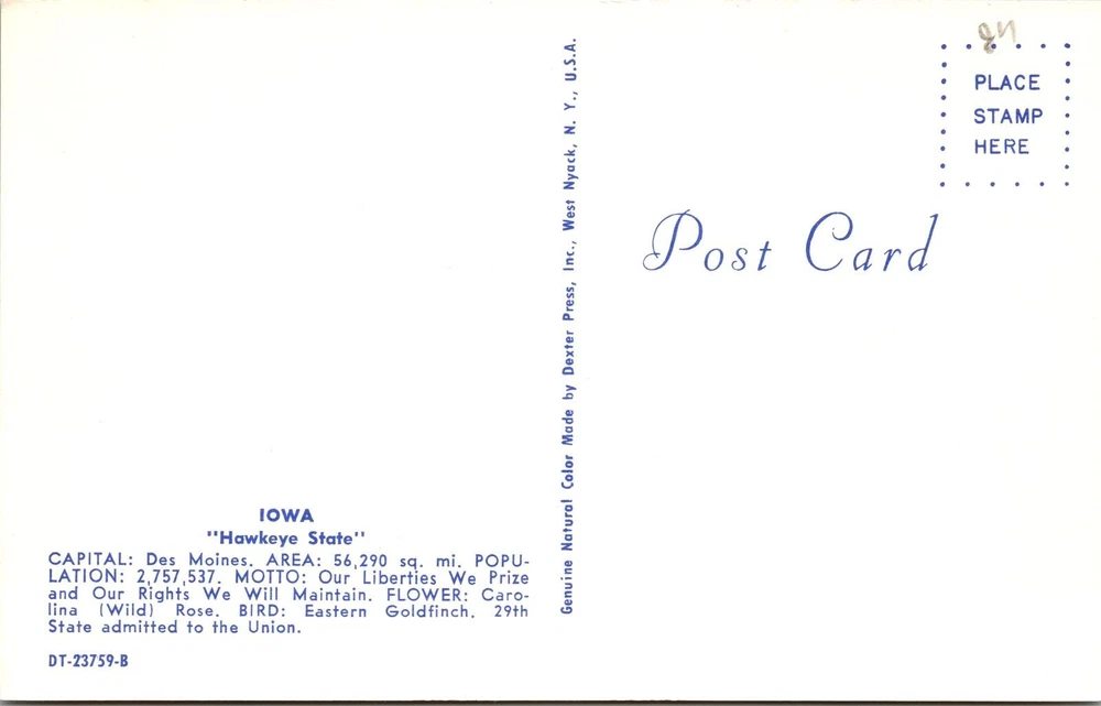 Country: USA Era: Chrome Region: Iowa Original/Licensed Reprint: Original Subject: Cities & Towns Theme: Cities & Towns Type: Printed (Lithograph) City: Iowa Country/Region of Manufacture: Unknown Postage Condition: See Image Unit of Sale: Single Unit