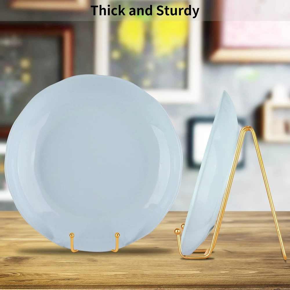 These gold plate stands are perfect for displaying small plates, photos, or collectibles! They're sturdy, elegant, and just the right size for showcasing items up to 18 inches. The set of five is great for creating a cohesive display, and the simple design adds a touch of class without overpowering your decor. Love how versatile they are—works for books, art, and more! Highly recommend for anyone looking to stylishly display their favorite pieces.