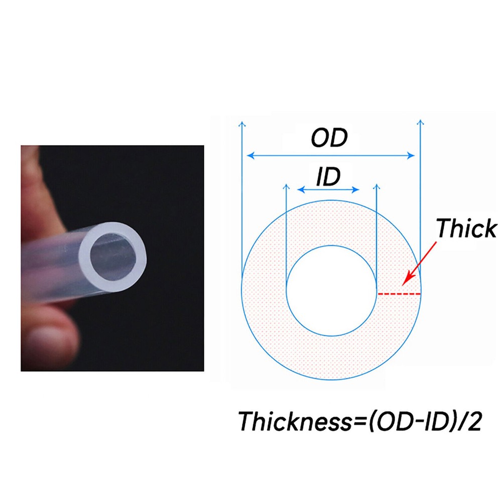 Specification Material: Silicone Inner Diameter: 0.5mm to 25mm Outer Diameter: 1mm to 31mm Temperature Range: -60℃ - 180℃ Uses Food Medical Hospital Pharmaceutical & Dairy tube products Food machinery connecting pipes Alcohol connecting conduit Water dispenser, coffee maker, water heaters, rice cookers and other connecting pipes, conduits Electrical equipment such as the casing Medical devices, connecting pipe, conduit, Coffee Machines Barista Milk Frother (the length is continous, if you purchase 5x1meter, you will get 5 meters in a continous length. the max.length is about 30-100 meters,it depends on the tube's ID. ) Note on the colors There could be small differences between the color shown and the actual color due to shooting light, monitor's brightness, contrast setting etc. Package including: According to your choice.