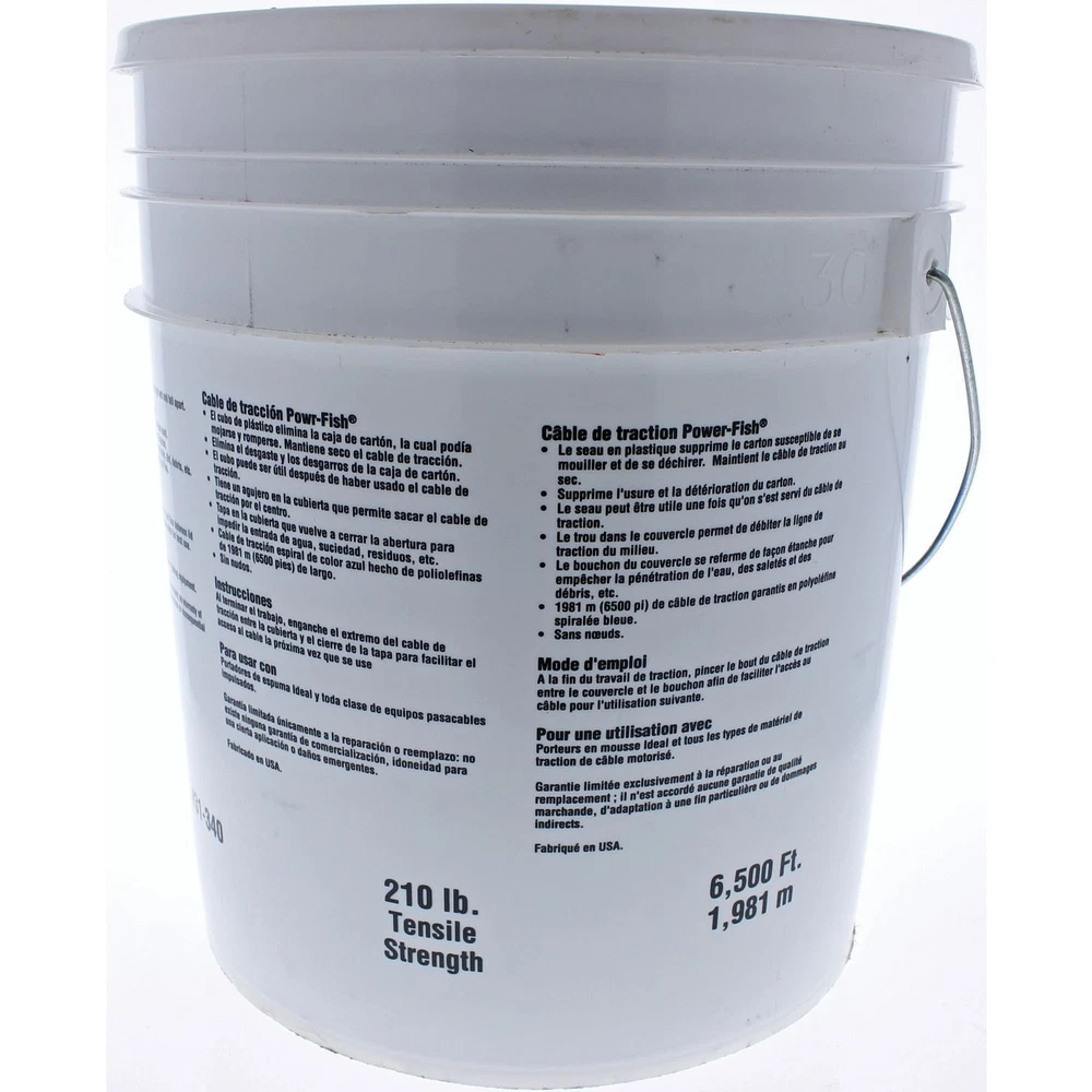 IDEAL 31-340 Powr-Fish Heavy-Duty Pull Line, 6,500 Feet PRODUCT SUMMARY • White with blue tracer for easy identification;• Heavy-duty 210 lb. tensile strength;• Continuous fiber polyline, ideal for blowing directly into conduit;• Will not rot or mildew;• Can be left in conduit for future use;• 6,500 ft. of line in bucket; Length: 12.75" Width: 11.25" Height: 11.25" 11.61 lbs (Some items are calculated at 1lb for free shipping and will not be the real item weight) _________________________________ EBAY STORE SMALL BUSINESS DELIVERING TO YOUR HOMES & BUSINESSES Check out other items sold by My Picks for You SHIPPING INFORMATION We make the following commitments for each sale: 1. You will receive a tracking number for your order. 2. We are always available to research any order that you have not received. 3. We will always work every order to its finality to your utmost satisfaction. ( Don't hesitate to message anytime about the progress of your order) CUSTOMER CARE All items have a 30 day warranty; some have a 90-day warranty. If an item you received from My Picks for You is damaged or defective you can return for a refund or replacement within 30 days after the order is placed on our website (and with some products 90 days). With fragrances the returns are a little different. Any fragrance that is less than 1/3 used can be returned for any reason within 30 days --this offer does not apply to soaps and body creams. If any fragrances, soaps, and creams are defective: package broken, out of date use period, etc, then you will receive a pre-paid return label and return for full refund or free reorder of any product of equal value on our ebay store. ABOUT OUR PRODUCTS We ensure that all products are brand new or in excellent refurbished condition prior to shipping. In the event of receiving an item which does not conform to those standards, please email or message us through ebay messaging. We will provide prepaid return labels for all items that are defective and you may send them back for a full refund, reship of the item, or an exchange with any item in our store of equal value. In some cases you will not need to send the defective item back. For these we may just require photos of the damage. ' My Picks for You' strives for CUSTOM CUSTOMER SERVICE for every customer. Our goal is that your shopping experience is excellent! CONTACT US You may contact us anytime through ebay messaging. We make your messages a priority with a goal of return messaging within 2-4 hours any day of the week. THANK YOU FOR SHOPPING WITH US!