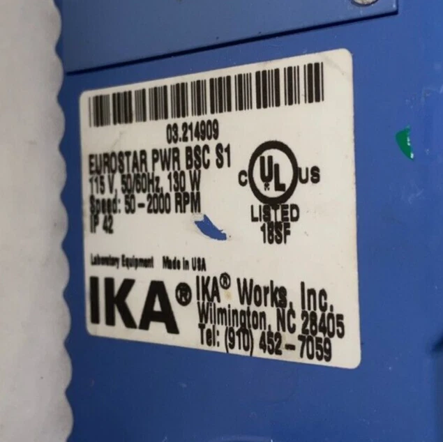Country/Region of Manufacture:United StatesIntended Use/Discipline:chemistry laboratory, Biological LaboratorySeller Notes:“TESTED AND WORKING. THE STAND AND CLAMP ARE INCLUDED.”Product:Overhead StirrerModel:EUROSTAR POWER BMPN:EUROSTAR PWR BSC S1Modified Item:NoBrand:IKA