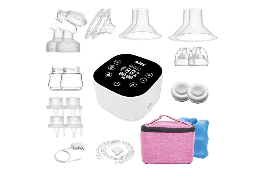 The IKARE Pain Free Portable Breast Pump is a double electric breast pump designed for convenient and efficient milk production. This hospital-grade pump comes in a 16-piece set with adjustable settings to fit your needs. The clear color and sleek design make it both functional and stylish. With features like being BPA free and portable, this pump allows for easy use and flexibility for new moms on the go.New open box