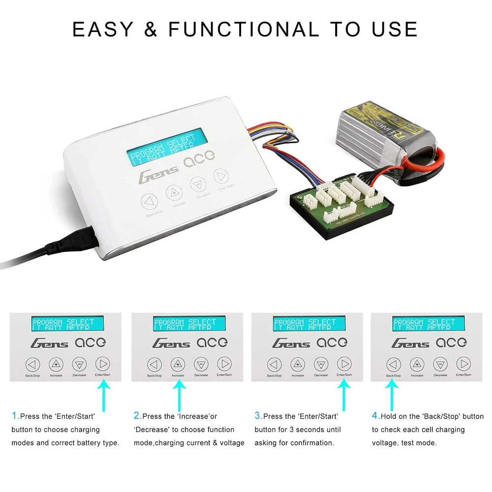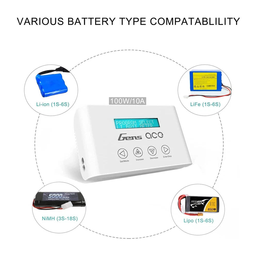 10A Faster Smart Lipo Charger-- GensAce Imars III 10A Smart Balance Charger, capable of 10 amp charge rates, worldwide 100V-240V voltage versatility, with 100 Watts of power. It is great to charge your FPV & Car Batteries. Easy to Charge-- Connect the charger to the power supply. The IMARS III LOGO will display for about 2 seconds before entering Charger mode. The top-level menu is divided into 3 functions. By pressing +/- buttons, the user may select between charge mode, battery check mode, and system setting mode. Safe to use-- IMARS III pass the FCC, CE and RoHS certifications, making your RC charging more safety. Lightweight design allows you to quickly charge the battery anywhere, anytime. Parameter-- Maximum charging voltage: 26.4 V / Maximum charging power: 100 W / Charging current: 0.1 ~ 10 A / Discharge current: 0.1 ~ 1.5 A / Cell compensation: 2 ~ 6 s / USB output: 5 V / 2.4 A. Note-- Please refer to the user manual for information on using the charger. If you have any questions, you can us and we will answer them for you. Shelf life is year.