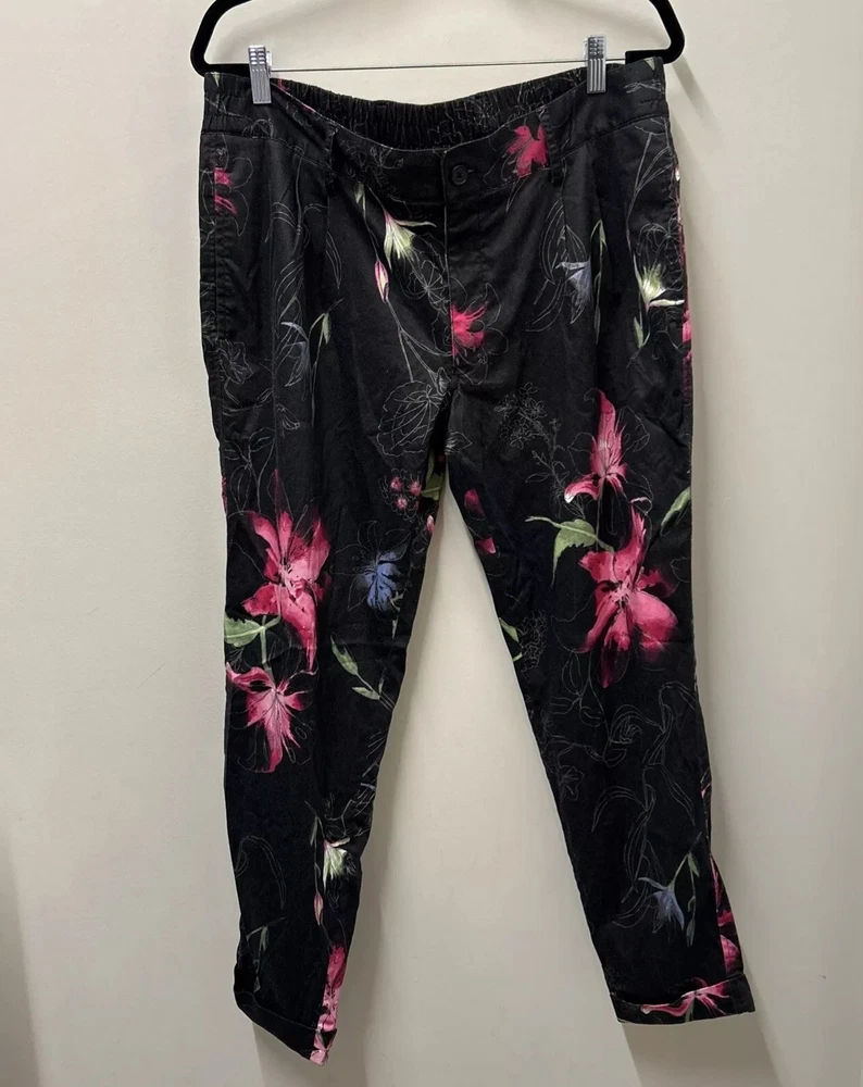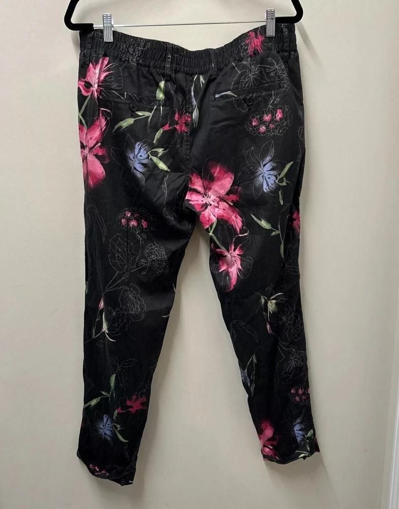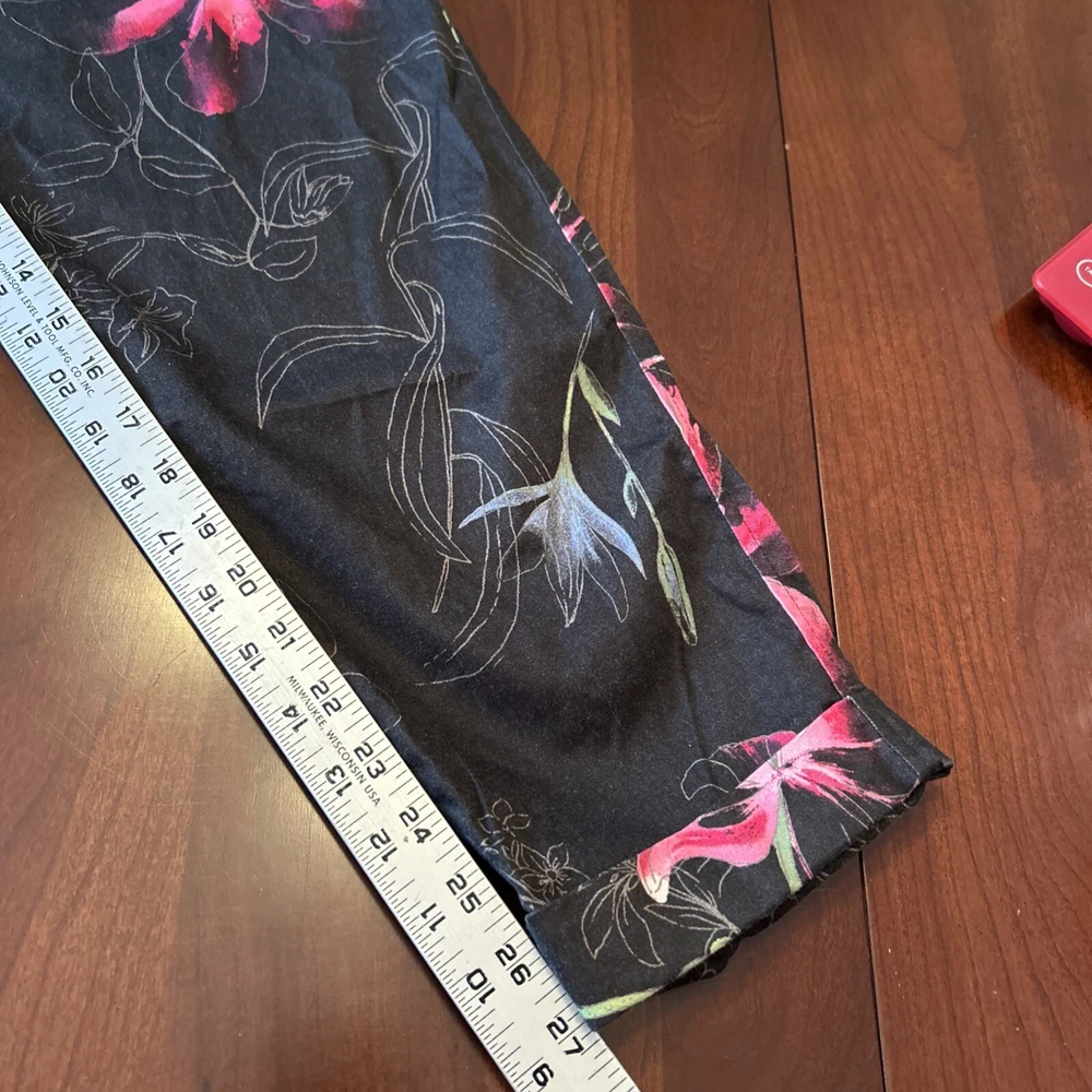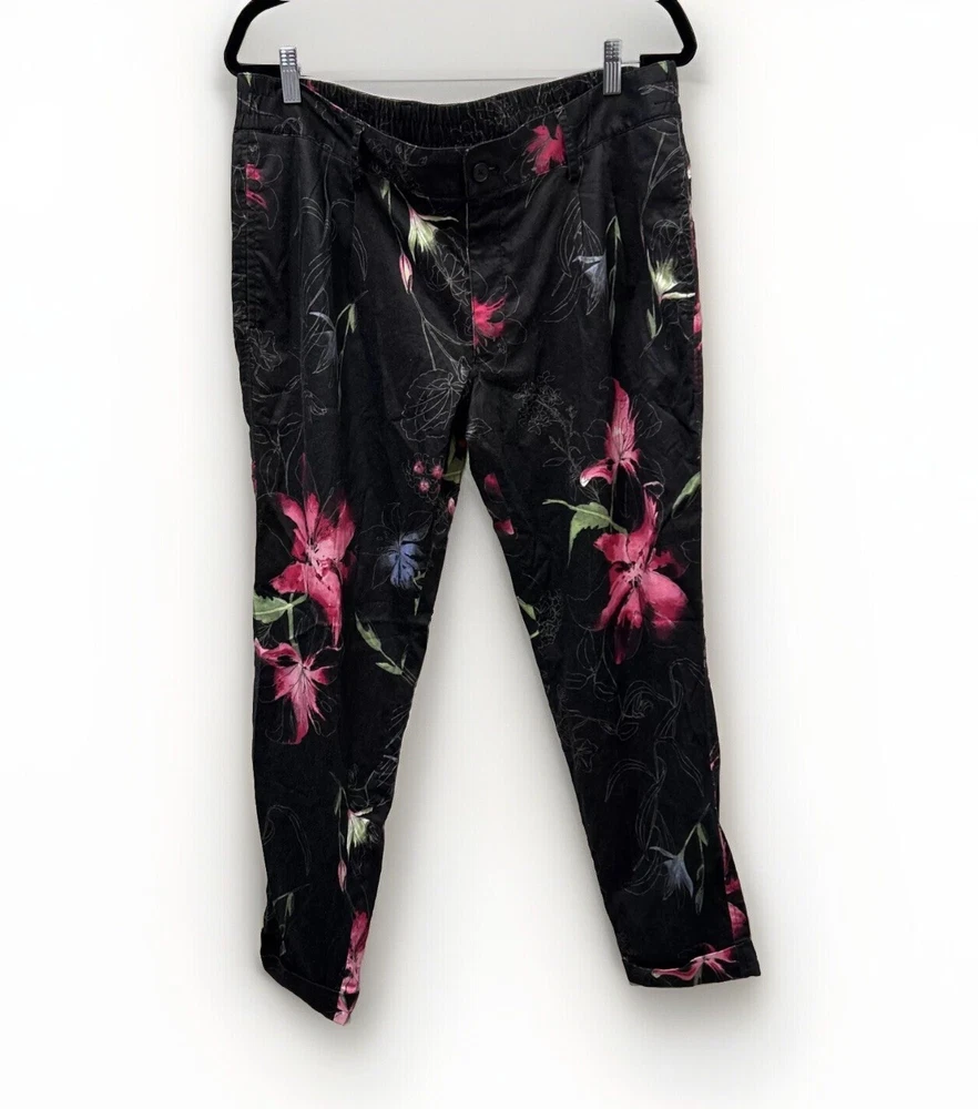 INC International Concepts Womens Pants L Black Pink Floral Tropical 80s Style Elevate your wardrobe with these chic INC International Concepts dress pants, designed to flatter with a slimming silhouette. The black hue is accented with a playful pink floral pattern, giving these pants a tropical vibe that's perfect for a variety of occasions. Crafted from a blend of lyocell and cotton, they offer both comfort and durability. With a size L regular fit, these pants cater to the modern woman who values both style and ease. The slim design pairs seamlessly with your favorite tops and shoes, making them a versatile addition to your collection. Whether you're dressing up for the office or a night out, these pants bring a touch of the 80s flair to your ensemble.