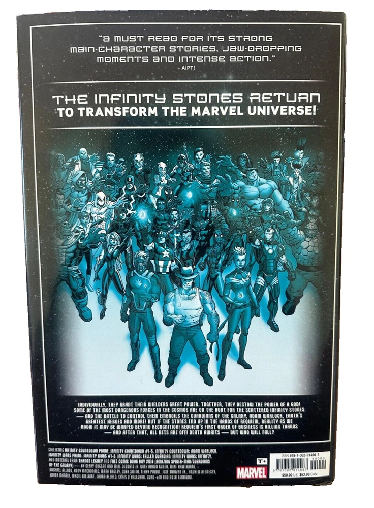 INFINITY WARS BY GERRY DUGGAN THE COMPLETE COLLECTION HC Marvel Comics Creators: Gerry Duggan, Mike Deodato Jr. (Illustrated by), Mike Allred (Illustrated by) Publisher: Marvel Comics ISBN: 9781302914967 Binding: Hardcover Pages: 592 pages On Sale Date: 9/17/2019 Dimensions: 11.2 in H | 7.5 in W Rating: Ages 13 And Up, Grades 8 to 17 Collects Infinity Countdown Prime, Infinity Countdown: Adam Warlock, Infinity Countdown #1-5, Infinity Wars Prime, Infinity Wars #1-6, Infinity Wars: Fallen Guardian And Infinity And Material From Free Comic Book Day 2018 (Amazing Spider-Man/Guardians Of The Galaxy) #1 And Thanos Legacy #1. The full saga of Requiem and the Infinity Wars! The Infinity Stones are back. Individually, they grant their wielders great power. Together, they bestow the power of a god! As each stone's location is discovered, forces converge for a battle that will send the universe down a dark path - to the end! Featuring the Chitauri, the Raptors, the Nova Corps, the Guardians of the Galaxy, Adam Warlock and more surprising Stone wielders! But who, or what, is Requiem? When she warps the Marvel Universe in half, what surprising heroes will assemble to stand against her? And when death comes at last, who will fall?