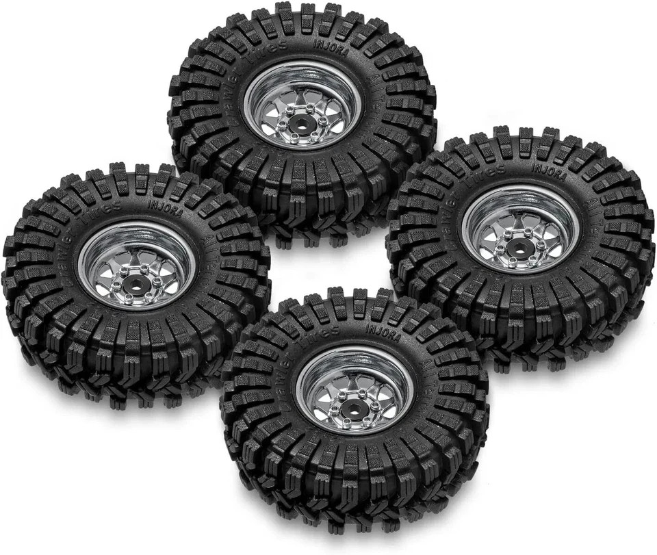 Product Description Upgrade your crawler’s performance with a wheel and tire combo built for extreme grip, stability, and durability. This 1.0” beadlock wheel & soft compound tire set features a -3.78mm negative offset, giving your RC rig wider stance and improved handling on uneven terrain — perfect for technical crawling. The high-quality stamped steel beadlock wheels deliver real weight and improved traction, while preventing tire slippage in high-torque situations. Paired with super soft, sticky rubber compound tires, you get unbelievable grip on rocks, wood, dirt, and trail surfaces. Designed specifically to fit popular 1/24 & 1/18 RC crawlers, this set is the ultimate upgrade for anyone who wants maximum crawling capability and a more aggressive stance. Push harder. Climb higher. Crawl like a pro. ⭐ Key Features & Performance Benefits Aggressive -3.78mm Offset Widens the stance for increased stability and improved sidehill control. Stamped Steel Construction Adds weighted realism + strengthens handling under steep climbs. Super Soft Sticky Compound S5 rubber grips tight to rocks, logs, and technical surfaces. True Beadlock Design No glue needed — prevents tire slip under high torque. Heavy-Duty Bias Ply Tires Flexible tread + tough construction for long-lasting performance. Perfect Fit for 1/24 & 1/18 Crawlers Works with SCX24, FCX24, TRX4M, AX24, and similar models. Scale Look, Competition-Level Performance Boosts capability without sacrificing appearance. 🔍 Suggested Item Specifics / Attributes Attribute Details Condition New Type 1.0” Beadlock Wheels & Tires Set Wheel Material Stamped Steel Tire Material S5 Super Soft Rubber Tire Size 62mm x 22mm Wheel Offset -3.78mm Compatible Scale 1/18, 1/24 Compatible Models Axial SCX24, AX24, TRX4M, FMS FCX24 & similar Quantity 4 Wheels + 4 Tires Features Beadlock, Soft Compound, Durable, High Grip, Negative Offset Color Grey (Wheels) For Vehicle Type RC Rock Crawler