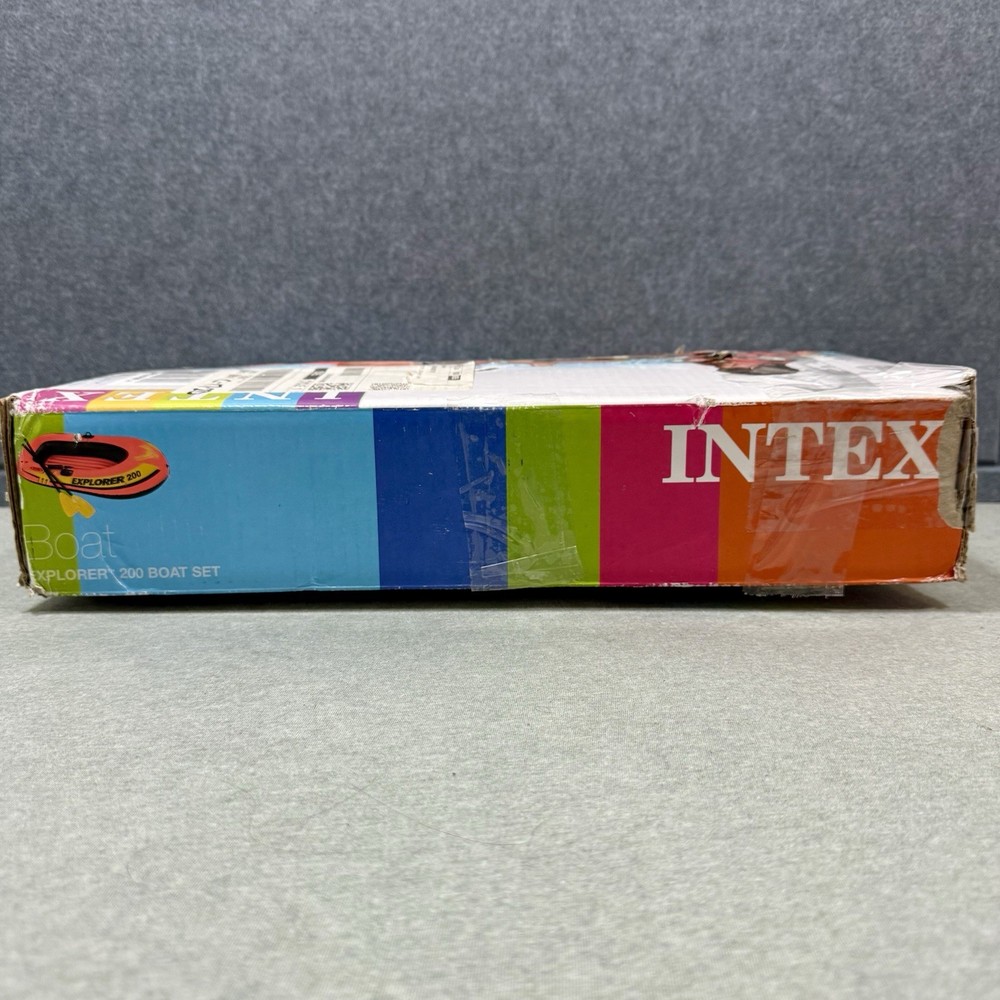 Enjoy fun days on the water with the Intex Explorer 200, a compact inflatable raft designed for two people. Made by Intex, a trusted name in durable water gear, this raft offers stability and comfort for lakes, pools, or calm rivers. This raft is pre-owned and in good condition with normal signs of use. Please note: the pump is not included, so you’ll need to use your own pump for inflation. Features: • Designed for 2 people (up to 210 lbs total capacity) • Heavy-duty vinyl construction for durability • Two air chambers with double valves for added safety • Inflatable floor for comfort and rigidity • Includes grab rope and oar locks Perfect for summer adventures or relaxing on the water — lightweight, easy to transport, and simple to set up once inflated.
