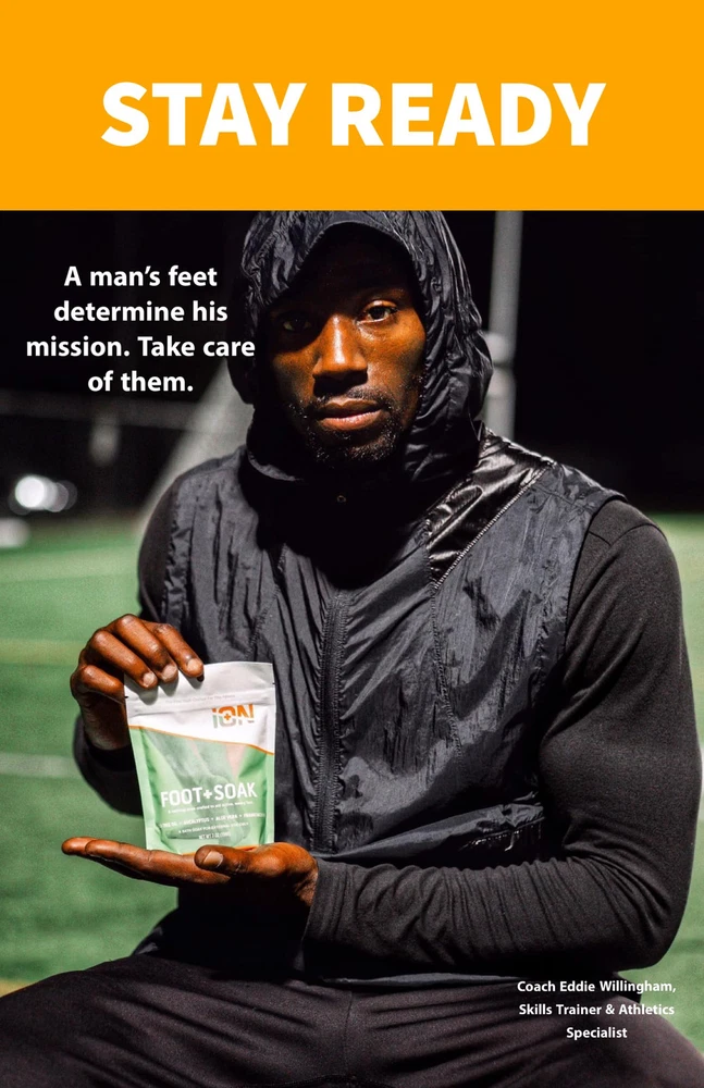 iON's natural solution to help the fatigued, weary feet of the athlete and active person crafted with herbs frakencinse, tumeric, tea tree, eucalyptus and aloe for a soothing experience. Battle challenges of athletic foot care like odor, swollen, sore feet, and in-grown toenails and soften calluses. Should be part of every athlete's self-care routine. Relaxing soak for sore, tired and fatigued active feet Crafted for endurance and power athletes, sprinters, fencing, soccer, football, runners and mma Amazing revitalizing scent addresses foot odor with frankincense, tea tree, peppermint essential oil Moisturizing grape-seed oil helps cracked, dry feet, replenish skin and help callouses Magnesium epsom salt and turmeric help with athlete's swollen, sore feet Marathoners, road racers and OCR athletes find this perfect for recovery after long road races Use in a warm foot bath for soothing comfort post training or in a cold foot bath after long road races or distance workouts for de-inflammation