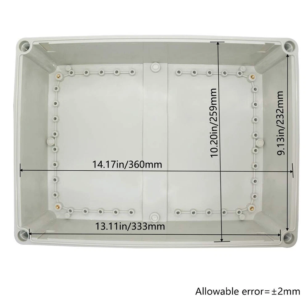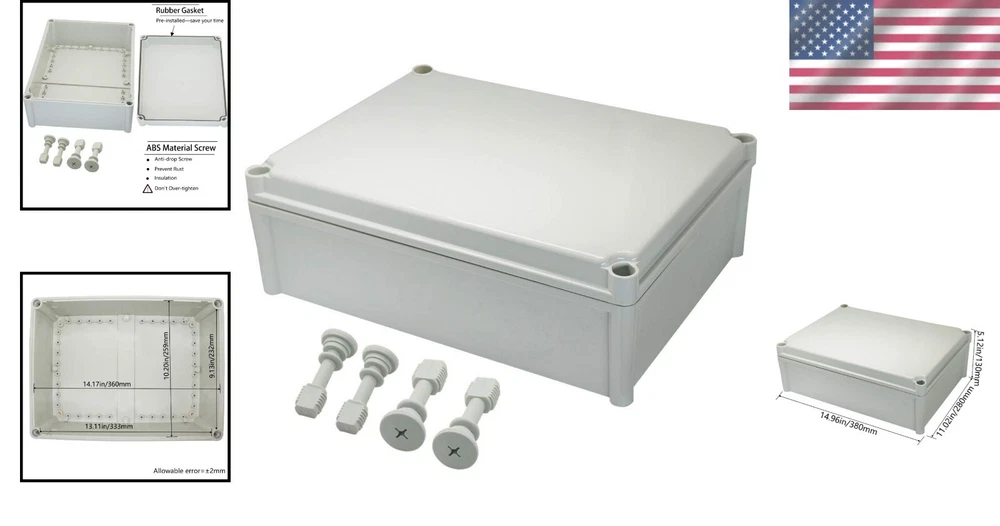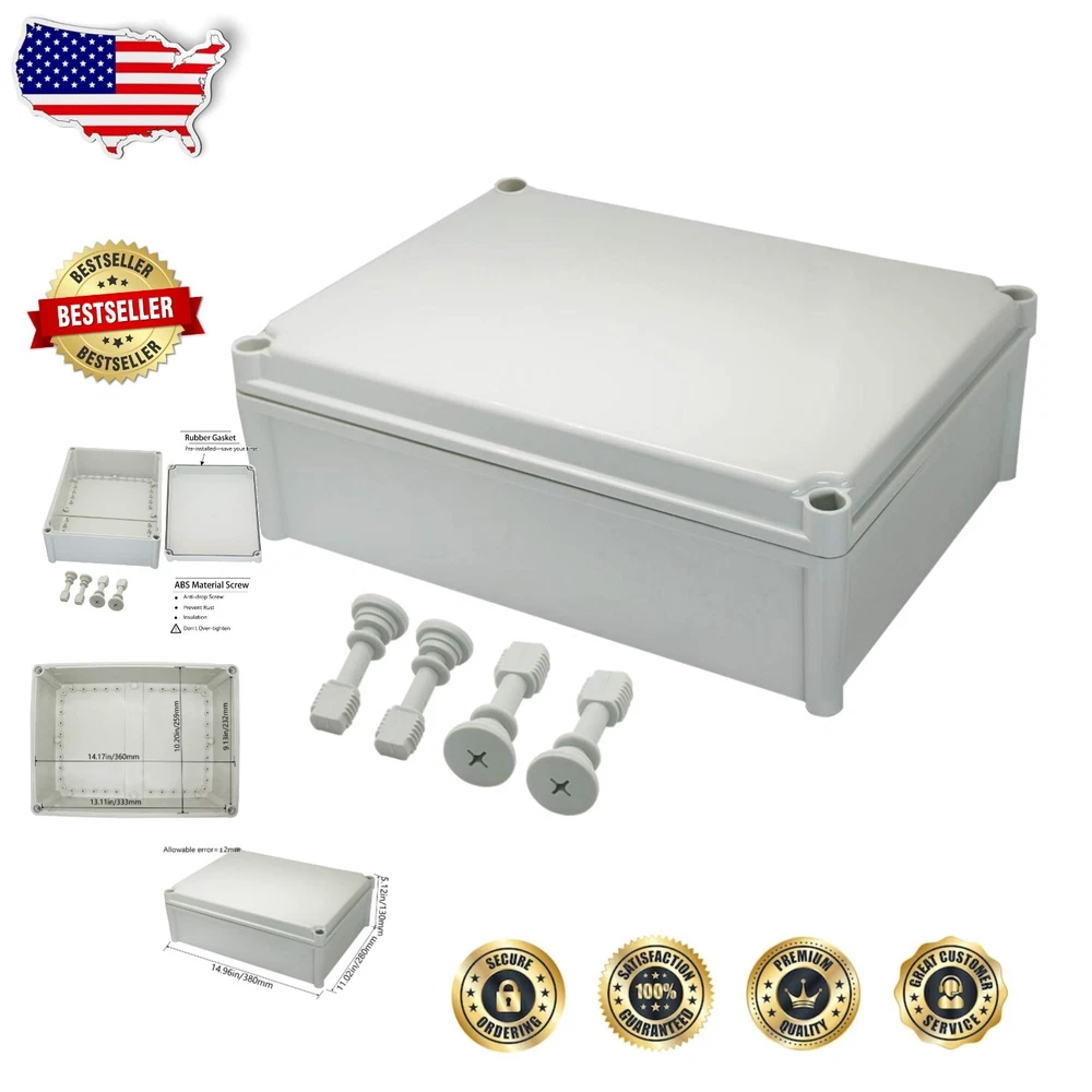 IP67 Waterproof ABS Junction Box - Dustproof Electrical Enclosure 14.96"x11.02" ‹ › ‹ › ‹ › ‹ › ‹ › ‹ › ‹ › ‹ › IP67 Waterproof ABS Junction Box - Dustproof Electrical Enclosure Dimensions: 14.96" x 11.02" x 5.12" (380 x 280 x 130 mm) (L*W*H) Features: IP67 Waterproof Rating: This enclosure is designed to withstand splashing water, rain, dust, snow, oil, and UV exposure, making it perfect for both indoor and outdoor applications. Industrial Electrical Box: Our electric unit is completely waterproof and dustproof, ensuring no unwanted debris enters. Modify the box with drilled holes customized to fit your project's needs, all while maintaining its structural integrity. Superior Sturdy Construction: Crafted from high-quality ABS material, this junction box offers exceptional impact resistance and electrical insulation, ensuring your equipment remains protected even in the harshest environments. Easy to Use: This project box features a user-friendly design for effortless operation and repair with no need for cable cutting, making it ideal for electronic projects, instrument enclosures, power supply units, temperature controller boxes, and more. Benefits: Weather-resistant performance for versatile usage. Durable construction that withstands external stressors. Customizable design, allowing for tailored modifications. Simple installation and maintenance for all users. Perfect for DIY enthusiasts and professional projects alike. Why choose our IP67 Waterproof ABS Junction Box? Elevate your project's safety and longevity with our IP67 Waterproof ABS Junction Box. Whether you're tackling a DIY venture or working on a professional installation, this durable enclosure's robust design and weather-resistant features ensure that your electrical components remain safeguarded from the elements. Don’t compromise on protection; order your IP67 Waterproof ABS Junction Box today and experience unparalleled performance! Shipping Free & Fast Shipping - We offer free shipping to most of the USA with a normal delivery time of 3-7 days. However, due to the current situation, additional delivery time (up to 3 weeks) may be required for some items. Alternative Carriers - We may use alternative carriers (e.g. USPS, FedEx, UPS, etc.) to ensure your package arrives safely and on time. Due to the use of multiple carriers, we are unable to provide a tracking number automatically. Handling Time - Orders are processed and shipped within 1-2 business days of receiving cleared payment. Shipping Restrictions - Shipping to Alaska, Hawaii, Puerto Rico, Guam, and other US territories may incur shipping charges or delivery restrictions. Please contact us before ordering, or your order can be refunded/cancelled. State Restrictions - There may be restrictions based on your state of purchase. For example, certain items may not be shipped to California due to state regulations. Contact for Tracking Updates - If you require tracking updates or have any concerns about the delivery of your order, please feel free to contact us, and we will be happy to assist you. Return 30-Day Hassle-Free Returns - We want you to be completely satisfied with your purchase. If you are not, you can return the item within 30 days of receiving it for a full refund or exchange. Easy Return Process - To start a return, simply contact us and we will provide you with a prepaid return shipping label and detailed instructions. Restocking Fee - There are no restocking fees for returns. However, the buyer is responsible for return shipping costs if the return is not due to a seller's error. Refund Processing Time - Refunds will be processed within 5 business days of receiving the returned item in its original condition. Payment We accept all major credit cards, PayPal, and Apple Pay for your convenience. Your payment information is secure and encrypted to ensure a safe and seamless transaction. Please complete your payment within 3 days of purchase to avoid any delays in shipping. Feedback Your feedback is extremely important to us. We strive to provide the best products and customer service possible. If you are satisfied with your purchase, please take a moment to leave us a positive review. If you have any concerns or issues with your order, please contact us before leaving negative feedback. We are committed to resolving any problems and ensuring your satisfaction. Contact Us If you have any questions or concerns, please feel free to reach out to our customer support team. You can contact us through the eBay messaging system. We are available Monday to Friday, 9:00 am to 5:00 pm EST, and we will do our best to respond to your inquiry within 24 hours. Buy it now and enjoy a pleasant shopping experience! UPC: Not Set Model: Not Set Unit Quantity: 3.04 lb Material: ABS/Plastic Application: Electronics,Industrial,DIY Projects Features: Waterproof,Dustproof,Impact Resistant,Electrical Insulation Suitable For: Ceiling,Exterior,Interior,Wall Smart Home Compatibility: Universal Smart Home Protocol: None Mounting Style: Surface Resistance Properties: Dust Resistant,Waterproof Control Style: None Room: Any Room Protection Properties: None Brand: Unbranded Type: Junction Box Number of Outlets: 0 Box Shape: Rectangular Plug Type: None Finish: Oil Maximum Amperage: None Current Type: None Current Rating: None MPN: Not Set Voltage: None Number of Poles: None Number of Phases: None Number of Gangs: None Number of Spaces: None Color: Gray Number in Pack: 1 Item Width: Not Set Item Length: Not Set IP Rating: IP67 Item Height: Not Set Number of Knockouts: None Orientation: Horizontal/Vertical Electrical Connection: None Country/Region of Manufacture: Not Set Number of Circuits: None Power: None Operating Temperature: None Protection Device: None Unit Type: Not Set