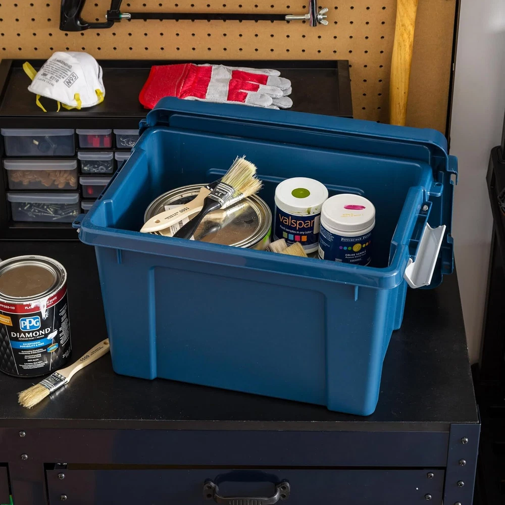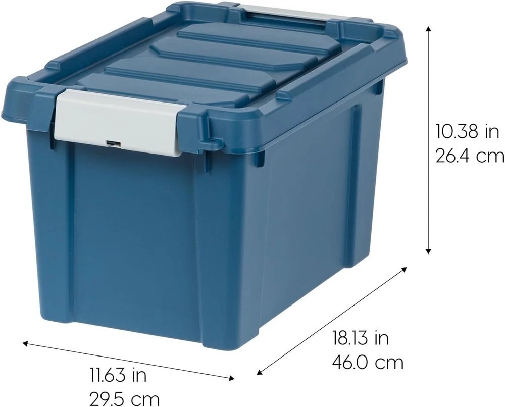 About this item ECO-FRIENDLY: 100% made from recycled materials and certified to high environmental standards, our totes offer durable storage solutions while positively impacting the planet. Shop now and join us in contributing to a more sustainable future. MADE IN USA: Quality you can trust. Our storage totes are proudly crafted in the USA using high-quality, durable materials, ensuring your belongings stay safe and secure. TIGHT BUCKLE-UP LATCHES: The latching system ensures a tight and secure fit. Ideal for storing all sorts of items like documents, food, clothes, camping, and hunting gear, etc. On Dec 20, 2024 at 18:52:37 PST, seller added the following information: