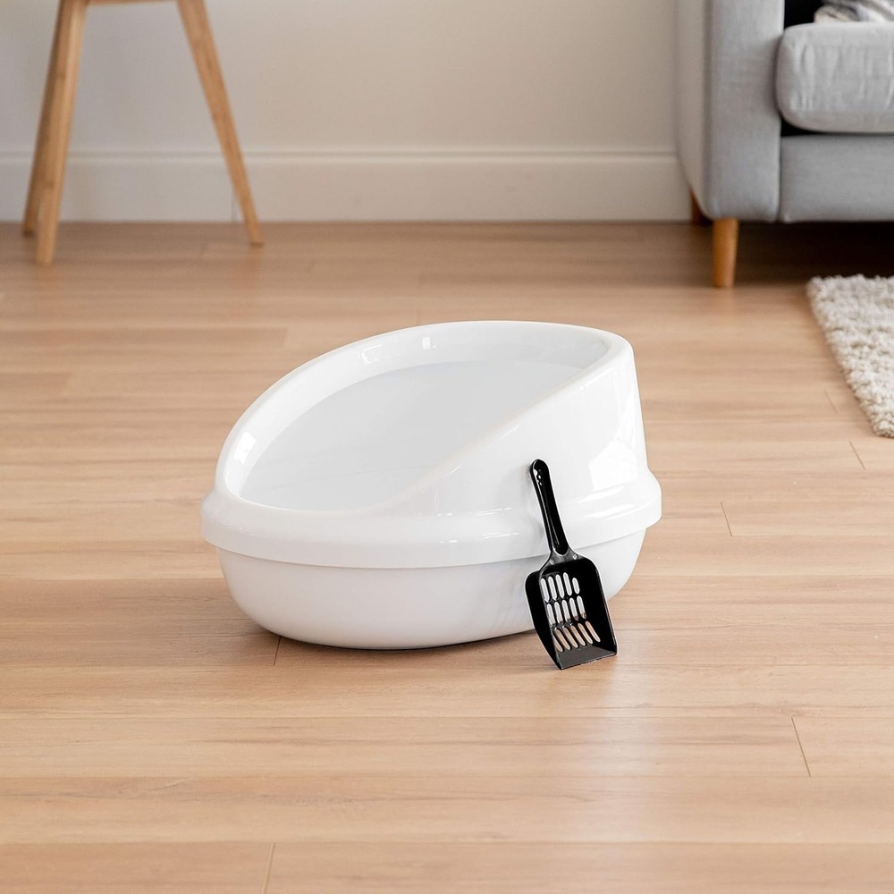 About this item PERFECT PET CARE: The open-top kitty litter tray offers a functional and comfortable bathroom solution. Easy entry and tall walls keep litter and spray contained, giving your cat comfort and your home cleanliness.