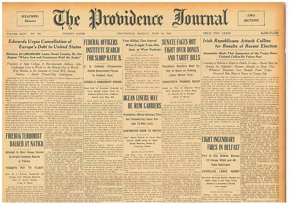 IRISH REPUBLICANS ATTACK COLLINS FOR RESULTS OF RECENT ELECTION ORIGINAL 'THE PROVIDENCE JOURNAL' NEWSPAPER JUNE 19 1922 (20 pages) Wonderful birthday gift with topical news from home and abroad including numerous photographs, stories, fashion and adverts. We have a collection of these stunning newspapers, book reviews and magazines from the 1920's 1930's 1940's 1950's 1960's 1970's for January, February, March, April, May, June, July August, September, October, November and December. Covering most dates in any given month. We also have an extensive archive of American and Canadian newspapers, magazines and book reviews covering most of the United States. Some of the titles include: New York Times, Post, Sun, Herald, Tribune, Journal of Commerce, Kansas City Star, Times, Christian Science Monitor, San Francisco Chronicle, LA Times, Washington Times, Star, Baltimore, WSJ and many more titles. Canada titles include - Montreal Daily Star, Gazette, Standard, La Patrie, Toronto Mail & Empire, Daily Star Please don't hesitate to contact us through eBay messaging with any specific dates or inquiries, we would be delighted to search for you. PROFESSIONAL, HIGH QUALITY PACKING, AS WE STRIVE TO DELIVER YOUR ITEM IN THE BEST POSSIBLE CONDITION.