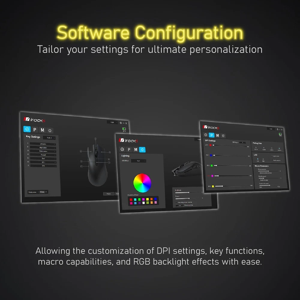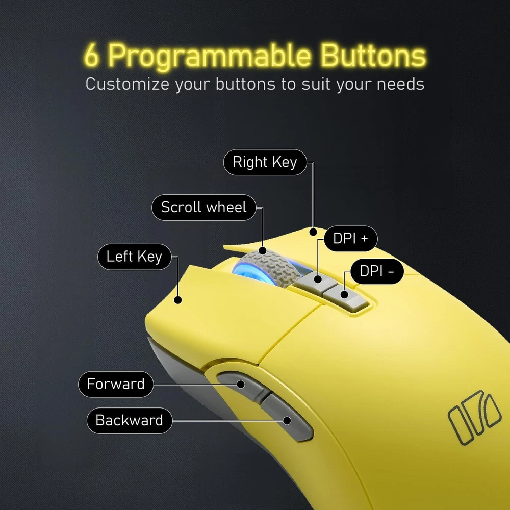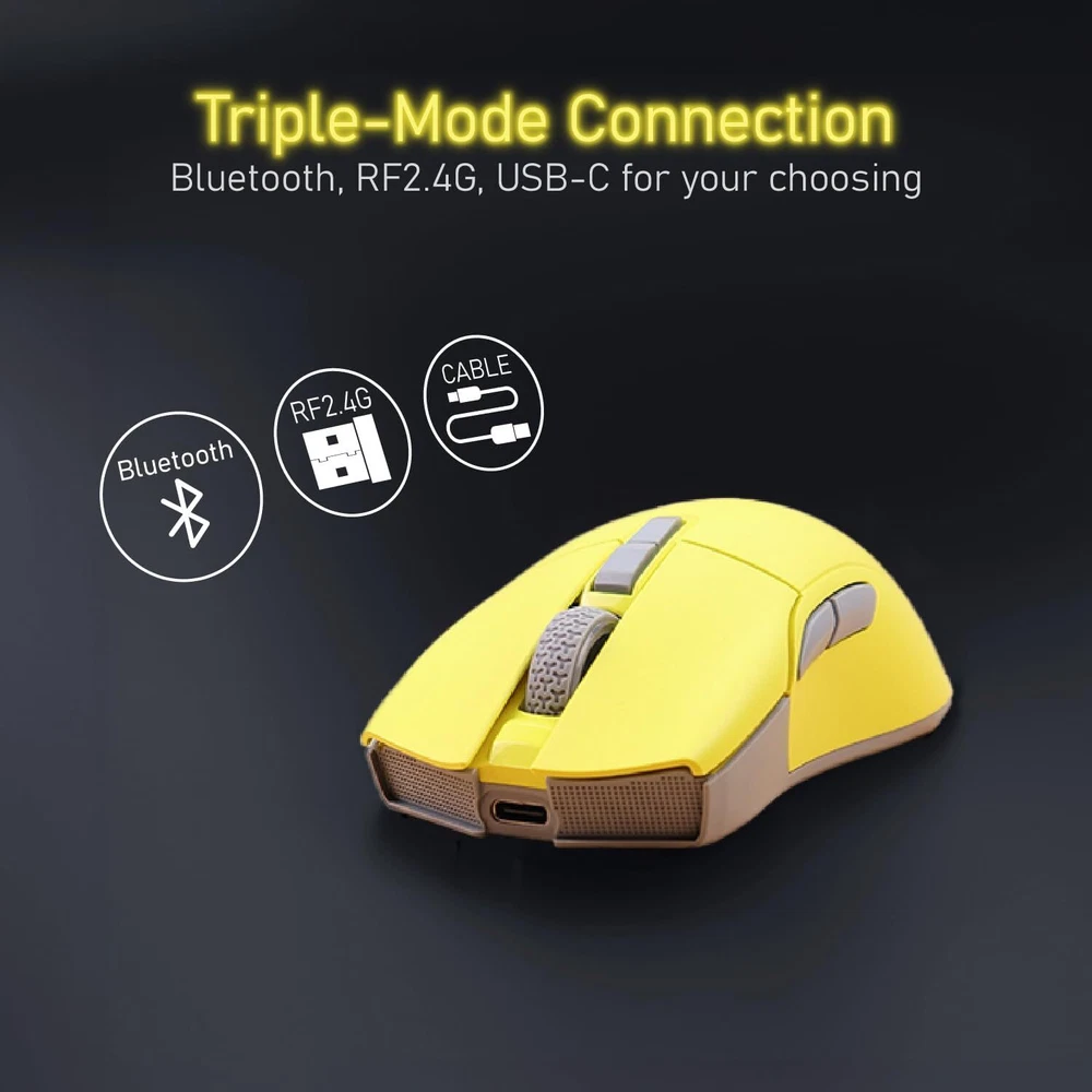 Product Description iRocks M31R Wireless Gaming Mouse, Triple Mode 2.4G/ Bluetooth/USB-C Detachable Cable Gaming Mouse, Kailh GM8.0 Switches, Advanced PixArt PAW3395 Optical Sensor, Up to 26,000 DPI - Lemon Yellow High Efficiency Triple Mode Gaming Mouse ⚡️ 2.4G/Bluetooth/detachable USB-C cable wired mode for easy recharging and flexibility in connecting to a computer. Lightweight design, only 66 grams, to alleviate the burden on the wrist during gameplay. PixArt PAW 3395 Optical Sensor ⚡️ adjustable DPI up to 26,000 dpi resolution. You can promptly adjust the moving speed for a fast response during gaming. Programmable Software⚡️ convenient for DPI adjustment, programmable key functions, and light switching. Also, combining onboard memory for customized settings on the go. Kailh GM8.0 Microswitches ⚡️ it provides 80 million times click ability. Colorful Design⚡️ more color selection to match the keyboard you have and brightness decoration for working tables. About Us We are a reputable seller with many years of experience selling on eBay. Our goal is to provide high-quality products and excellent customer service. Shipping Items will be shipped within 1-3 business days when we received payment. (Orders are not processed on weekends & holidays) Tracking information will be sent once item is shipped. Delivery time depends on destination and other factors Item is shipped to ebay address. Leaving correct address can minimize delay. For international shipping and shipping to Guam, Hawaii and Alaska, Please contact us before placing the order. International buyers please note: Import duties, taxes and charges are not included in the item price or shipping charges. These charges are buyer’s responsibility. We will try our best to reduce the risk of the custom duties. Local pick-up is unavailable at the moment. Contact Us We reply any email messages within 1 business / working days(off-duty at weekend). If you do not get a response from us, then please check your junk or spam mailbox. Our Business hours: Mon-Fri 9:00-18:00, UTC/GMT +8 hours. Please contact us either by clicking "contact seller" in the "purchase history" section or simply click "ask a question" at the bottom of this page. If you are unsatisfied with our item or service, please contact us before leaving any feedback. We are committed to resolve all issues in a friendly and satisfactory manner.