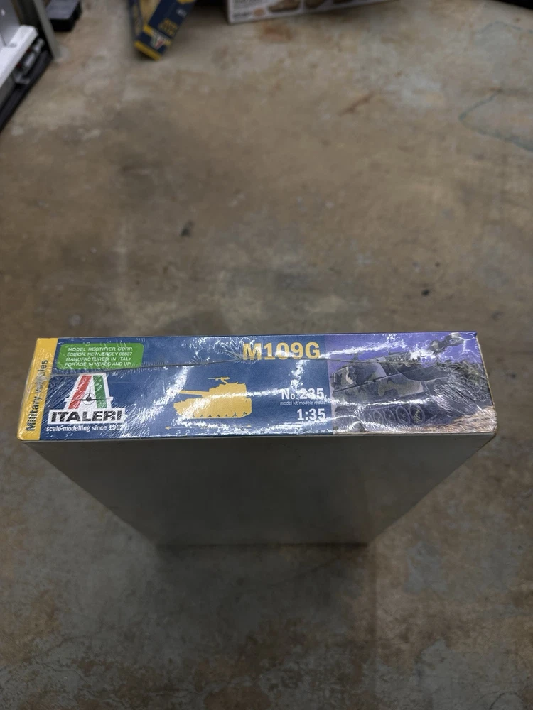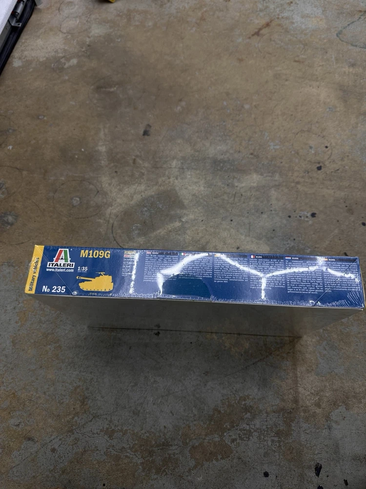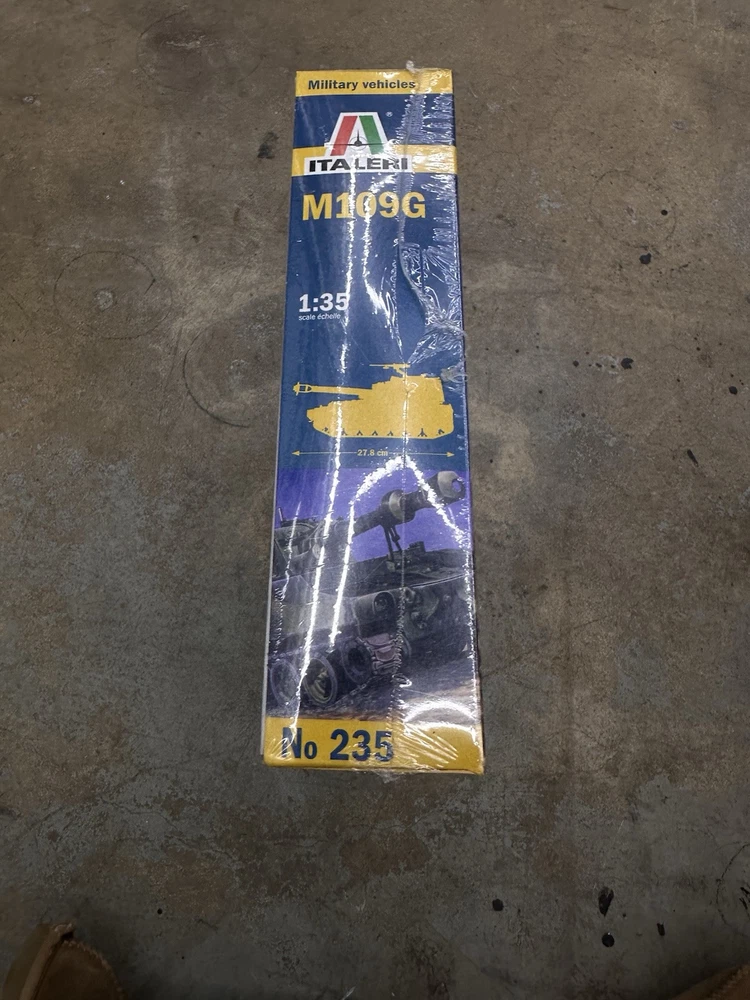 The Italeri M109G 1:35 Scale Model No. 235 is a plastic tank model kit from Italy. This model is in gray color and features an unopened box, making it suitable for collectors and hobbyists aged 17 years and up. With a scale of 1:35, this model accurately replicates the details of the M109G tank. It does not come autographed, and its brand is Italeri. The product is ideal for enthusiasts of tanks and military vehicles looking to add a high-quality model to their collection.