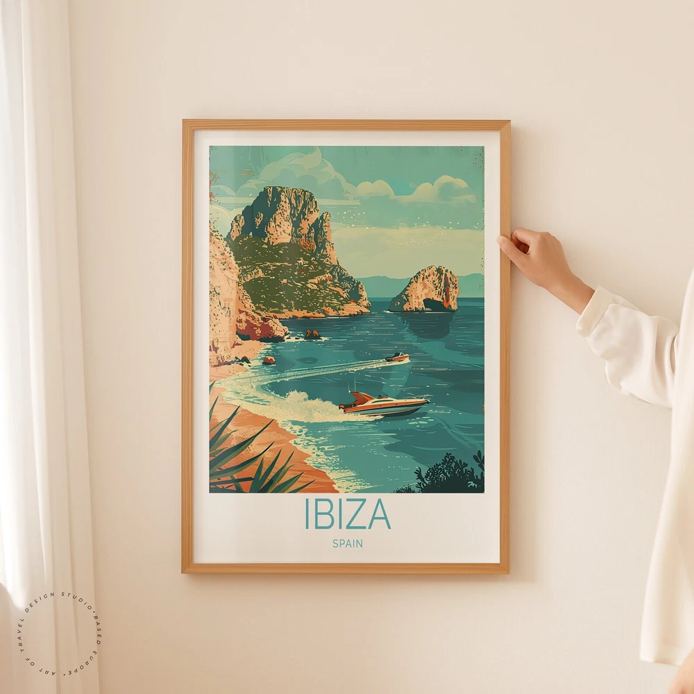 Ibiza Travel Poster Spain Wall Art Ibiza Coast Print Home Decor Custom Travel Poster Wedding Present Birthday Gifts Material: Premium luster photo paper Print type: Inkjet printing One side printed + The finish provides the highest possible resolution and color saturation + Lasts up to 200 years in color and 400 years in black-and-white + Printed on high-quality resin-coated photo base paper medium + Posters can be hung with double-sided tape, tacks, or framed + Hand washing with a gentle cry cloth is recommended for extended durability I will hand select the best choice of paper for your chosen design to ensure top quality results for a beautiful, bright and luxurious print. All prints are sealed in cellophane slips for protection during transportation, and are shipped in a protective cardboard envelope.