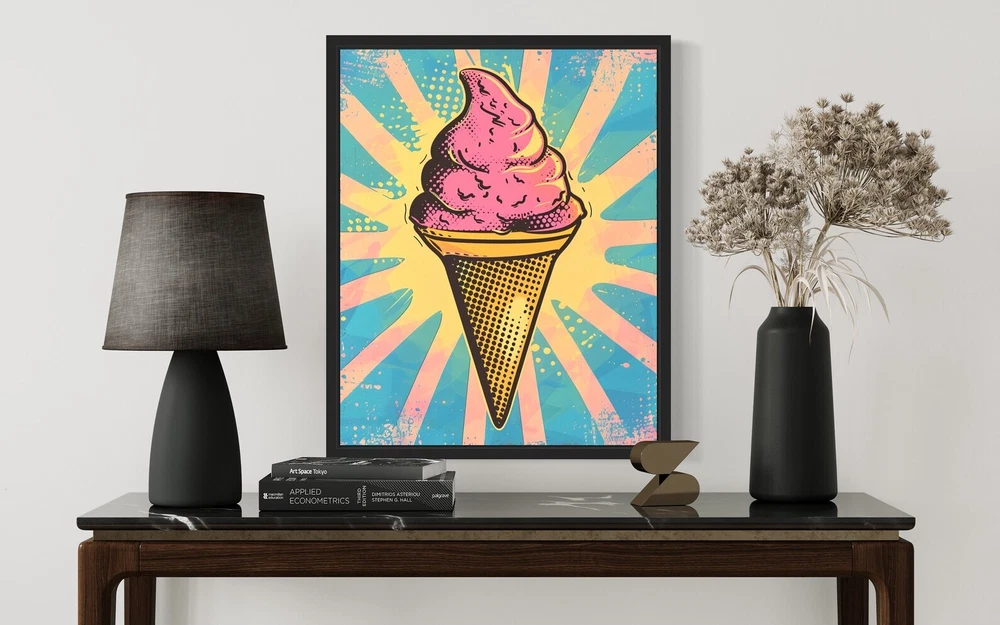 Ice Cream Cone Pop Art Poster Art Print Vintage Retro Painting Wall Art Decor Material: Premium luster photo paper Print type: Inkjet printing One side printed + The finish provides the highest possible resolution and color saturation + Lasts up to 200 years in color and 400 years in black-and-white + Printed on high-quality resin-coated photo base paper medium + Posters can be hung with double-sided tape, tacks, or framed + Hand washing with a gentle cry cloth is recommended for extended durability I will hand select the best choice of paper for your chosen design to ensure top quality results for a beautiful, bright and luxurious print. All prints are sealed in cellophane slips for protection during transportation, and are shipped in a protective cardboard envelope.