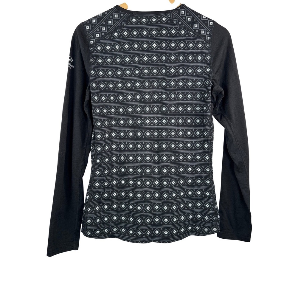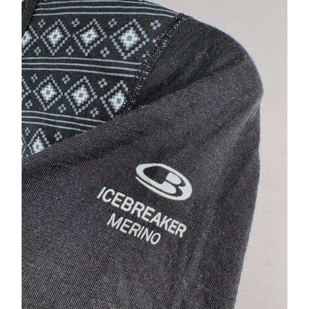 Good preowned condition Icebreaker Bodyfit 200 base layer top crafted from 100% merino wool for exceptional warmth and breathability. This long-sleeve piece features a striking geometric diamond pattern on the front and back panels with solid black sleeves and a classic crew neckline. Designed with a slim fit to sit close to the skin, it offers natural odor resistance and moisture-wicking properties for active use. This top is ideal for skiing, winter hiking, or as a cozy thermal layer for everyday cold-weather wear. Flat lay Measurements: • Pit to Pit: 18.5" (37" doubled) • Length: 25" 100% wool athleisure, light weight, Merino Wool, Base Layer, Thermal, Gorpcore, Outdoorsy, Winter Sports, Skiing, Hiking, Nordic, Geometric, Sustainable Fashion, Activewear, Breathable, Moisture Wicking, Lightweight Warmth, preppy, minimalist