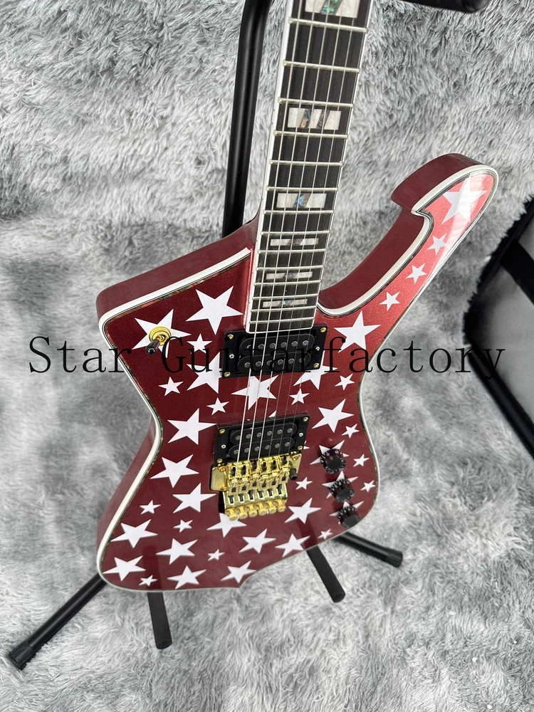 Iceman Red Electric Guitar Gold Part Solid Body Floyed Rose 6-strings Fast Ship