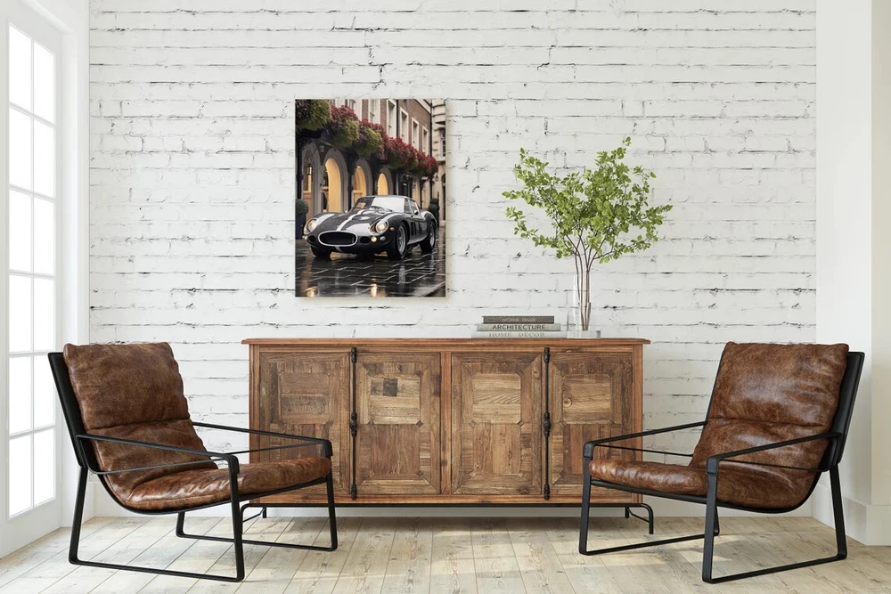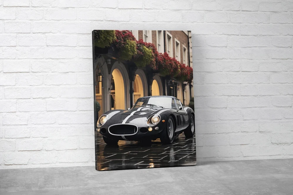 Iconic Black Classic Vintage Car on Street Wall Art Canvas Unframed Print Art