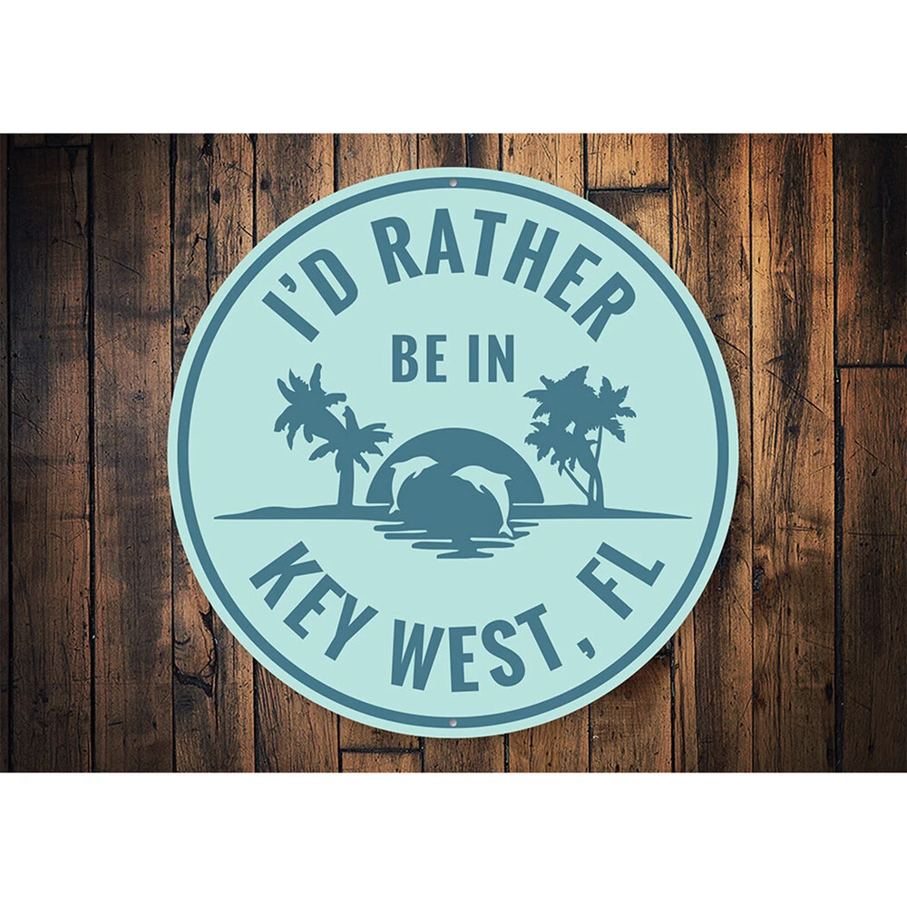 The Lizton Sign Shop Product Description I'd Rather Be in Key West Florida, Beach Sunset Dolphins, Marine Sea Metal Sign **there may be slight variations in color and text spacing, however your sign will be very similar to the image above. Quality Aluminum Street Signs Sign Information Aluminum Brand New Sign Comes with rounded corners and pre-drilled for easy hanging. We use the highest quality materials - 100% USA-made! Great Gift Idea - Our signs truly make a one of a kind gift. Personalize the sign with the text you want to add. Custom text for the sign can be sent to us via email. A BRAND NEW SIGN!! All of our street signs are made of premium materials. The sign itself is made of aluminum and will never rust providing years of enjoyment indoors and outdoors. No Cheap plastic!! The Lizton Sign Shop specializes in quality personalized custom aluminum signs for any occasion. These make the perfect sign for any man cave, office, basement, garage, college dorm, kids bedroom, game room, bar, pub, tavern or countless other places. *Colors may vary slightly from one computer screen to the next but the image should be very close. All content and designs are subject to copyright and may not be reproduced in any form. Payment Methods We would prefer payment to be made through paypal but we also accept all major credit cards. If you select the credit card option please contact us after you make your purchase and we can walk you through the steps to make a secure payment. Return Policies We will accept returns within 30 days of the purchase date. The buyer is responsible for any costs to return the item or items. Returns will only be accepted for items that were damaged in shipping or if we made an error in the manufacturing of your item, i.e. spelling error.