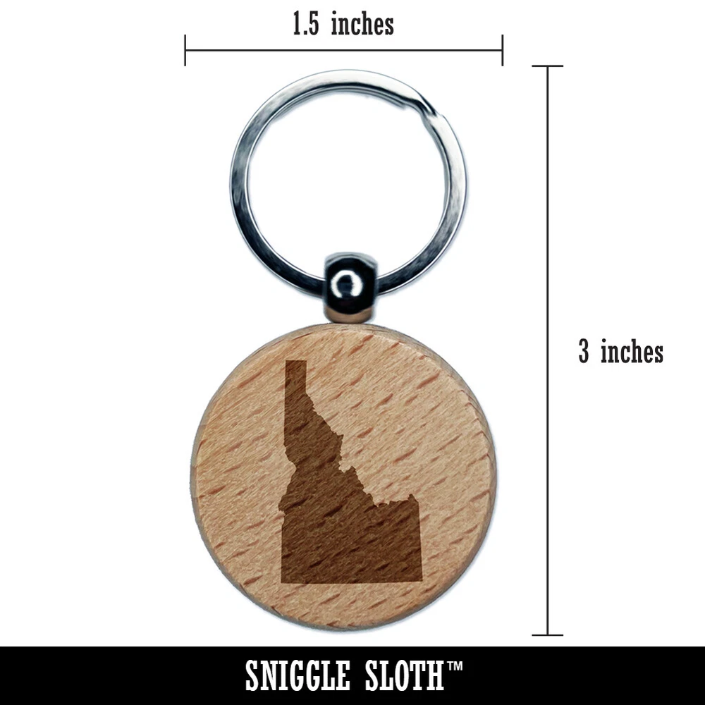 Idaho State Silhouette Engraved Wood Round Keychain Tag Charm
