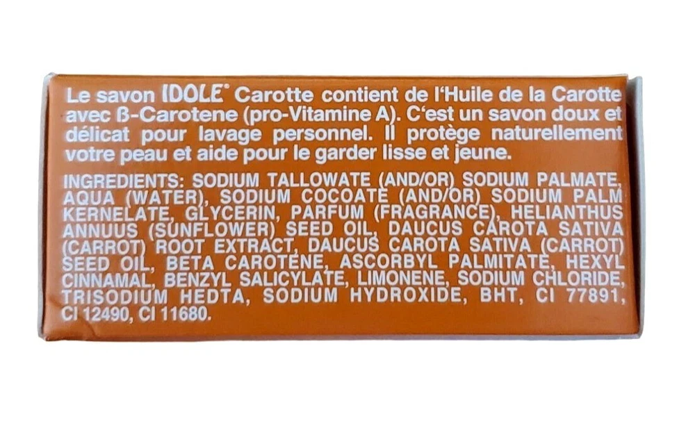 Idole Carrot Soap 3.5 Oz 100g Vitamin B-Carotene Savon Carotte Jabon Zanahoria
