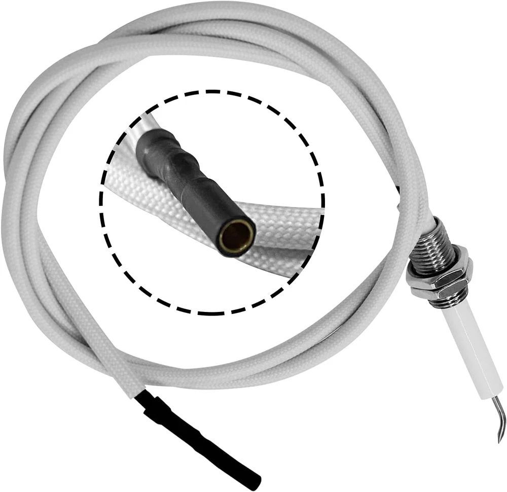 2 Pieces :27.56 inch(700mm) Ignitor Wire with M10*1 Ceramic Electrode length 55mm,product high temperature 200°C Universal spark with M10*1 thread includes two nuts to fix on your fire pit pan plate Please note that the connection to the igniter is circular, suitable for pressing the igniter;The end of the terminal is in round with 2.3mm insert, If yours is square, try to stamp it and connect your current igniter to get a signal Igniter ceramic electrode universally fit for many fire pit table pan,also fit BBQ grill burner, gas stove, grill, heater.Please check and compare dimensions with your original parts before place order Made of high quality material ensure safe and long-lasting performance. There is a heat resistance coating over the wire to ensure safe use. will guarantee you 100% satisfaction of the Ceramic Electrode Assembly Igniter Ceramic Electrode Replacement Part .27.56-inch Ignitor Wire &Ceramic Spark Plug Ignition Electrode for Fire Pit Burner, Gas Grill Burner