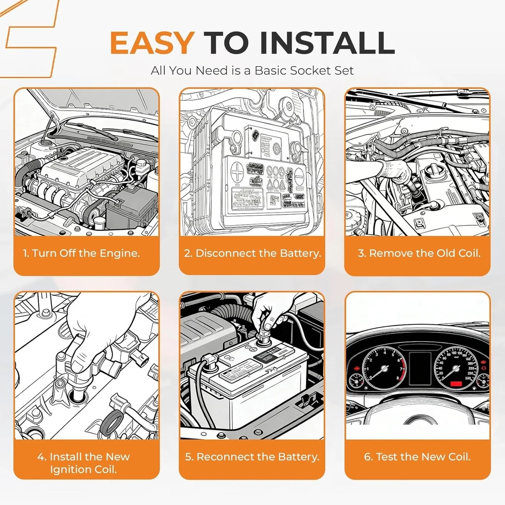Free eBay listing template designed by dewiso.com Ignition Coil Packs and Iridium Spark Plugs Kit Fit for Hyundai 2015-2019 Sonata Santa Fe Tucson Kia 2017-2022 Sportage Optima Sorento 2.0L 2.4L L4, #UF764 93175 Set of 4 FREE AND FAST SHIPPING! About this item RESTORE PEAK PERFORMANCE & SAVE FUEL: Unlock horsepower, boost throttle response, cut gas costs. Worn ignition parts lose power and waste fuel. Autoexact high-performance coil & iridium plugs deliver stronger, stabler sparks for full combustion—smoother acceleration, less shaking, better fuel economy. ELIMINATE MISFIRE & ROUGH IDLE: Tired of shaking, check engine light (P0300-P0308 codes) or poor starting? Autoexact ignition coil and spark plug set fixes these issues, restoring smooth, quiet engine run. Enjoy reliable starts every time. PREMIUM IRIDIUM & OE-QUALITY: Pre-gapped fine-wire iridium spark plugs (up to 40,000 miles life) ensure full combustion for max power and fuel economy. Epoxy-potted, heat-resistant ignition coils deliver strong ignition energy and durability—better than standard OEM parts. DIRECT OE REPLACEMENT & EASY DIY: 100% OEM fit, no mods needed, plug-and-play. Made for your vehicle’s make, model & VIN. Package Contents: 4pcs Ignition Coils Packs, 4pcs Iridium Spark Plugs. Refer to the install guide on the product detail page, DIY with basic tools, save on dealership labor. COMPATIBILITY: 2015-2019 Hyundai Sonata 2.4L, 2017-2022 Kia Sportage 2.4L, 2016-2020 Kia Optima 2.4L, 2016-2020 Kia Sorento 2.4L, 2019-2020 Hyundai Santa Fe 2.4L, 2017-2018 Hyundai Santa Fe Sport 2.4L, 2018-2021 Hyundai Tucson 2.4L, 2016-2019 Hyundai Sonata 2.0L, 2017-2020 Kia 0ptima 2.0L OE & REPLACE NUMBER: UF764, GN10730, C988, C50007DL, 273002GGA0, NGK 97390, NGK 93175, NGK 95983, XP5702. Before purchasing, please confirm the vehicle fitment to avoid purchasing the wrong product. RIGOROUS TESTING & GUARANTEED: Each unit passes strict voltage and sealing tests. Backed by 2-year warranty & lifetime expert support. 100% guarantee for your satisfaction & engine health. Product We offer a 30-Day Return Policy on items which you are not completely satisfied with. You have the option for a full-refund or an exchange of the item. No returns are available on items shipped outside of the US . Shipping We offer Free Shipping to the US and ship within 2 business days of payment, usually sooner. We use UPS express shipping. That's why your products are usually delivered within 3 days . Contact We try our very best to make sure every customer is completely satisfied. If there's a problem , message us! We're happy to help. 24/7 live chat available.