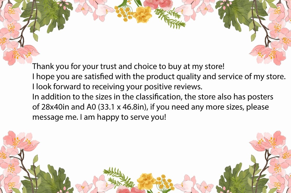 The posters come in four flexible sizes, suitable for various decoration needs: 📌 12x18 inches – Compact and ideal for workspaces, study corners, or as part of a gallery wall. 📌 16x24 inches – A medium size, perfect for bedrooms, cafés, or as a unique gift. 📌 24x36 inches – Larger and more eye-catching, great for living rooms, offices, or stores. 📌 32x48 inches – Extra-large and highly impactful, ideal for spacious areas such as lobbies, galleries, or exhibitions. These posters are more than just decorations—they are a reflection of your personality and style.
