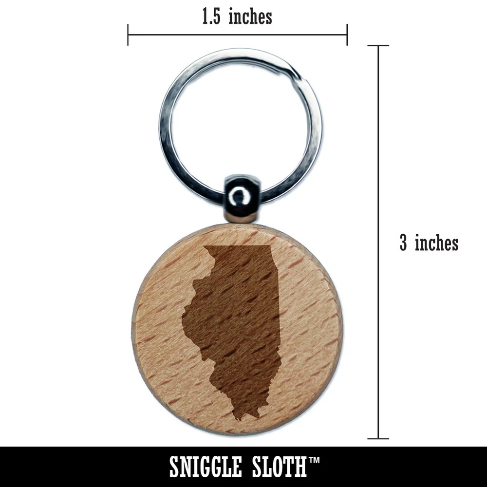 Illinois State Silhouette Engraved Wood Round Keychain Tag Charm