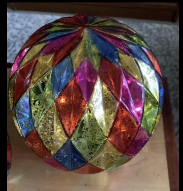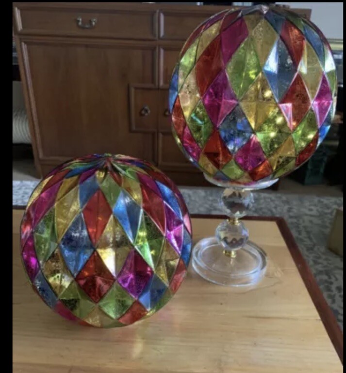 Box opened for condition, inspection, testing and photos. Other items in photo not included. Add some holiday cheer to your home with this stunning S/2 8" Illuminated Harlequin Spheres figurine by Valerie Parr Hill QVC. The multicolor glass figurine is perfect for Christmas or seasonal decorations and features a beautiful and intricate design that will delight all your guests. Celebrate the holiday season in style with this sold-out on QVC figurine that is sure to become a treasured addition to your collection. The figurine is crafted with the highest quality materials and is designed to bring joy and joyous memories to your home. Don't miss out on this amazing opportunity to add a touch of elegance and festive cheer to your living space.