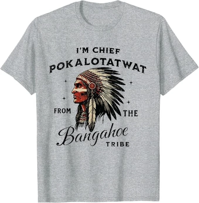 I'm Chief Pokalotatwat from The Tribe Indigenous Native T-Shirt Designed and Printed in USA Product Features: • Classic Look and Feel: This ultra cotton tee offer the timeless appeal of traditional cotton. The high-quality print enhances its casual appearance. • Material: Made from 6.1-ounce, 100% cotton. (Note: Dark Heather variant is 50% cotton, 50% polyester.) • Durability: Features double-needle stitching on the neck, sleeves, and hem for added durability. Designed for a roomy, unisex fit. • Print Type: DTG (Direct to Garment) • Manufacturer: Gildan 5000, 5000b (Made in USA) Shipping Information: • Handling Time: With POD(Print-On-Demand) product model, we typically require about 3 business-days handling time before shipping. In most cases, our handling time’s , rang e from 1-2 business days. • Delivery Time: • USA: Approximately 2 -6 business days • Canada: Approximately 6-10 business days (We currently don’t offer international Shipping) • Worldwide: Approximately 15-25 business days (We Currently don’t offer international Shipping) • Shipping Carriers: USPS and DHL • Note: Business days exclude weekends and holidays. Return & Exchange Policy: • Quality Guarantee: We stand behind the quality of our products and workmanship . Any defects or errors on our part must result in a refund/ replacement at no charge. • Conditions for Returns: Returns are generally not accepted for user errors such as incorrect selection of sizes, designs, or colors. Returns /Replacements are acceptable for damages such as poor printing results, incorrect size or design caused by us. • Note: Please reach out to us if there are any questions or issue s with your item, we’ll do our best to resolve any issue you might have. Note: • We’re glad to have your support! If you have a moment, y our honest feedback is very valuable to us. Thank you!
