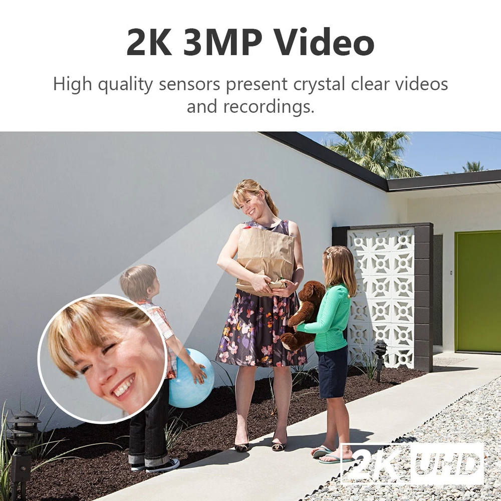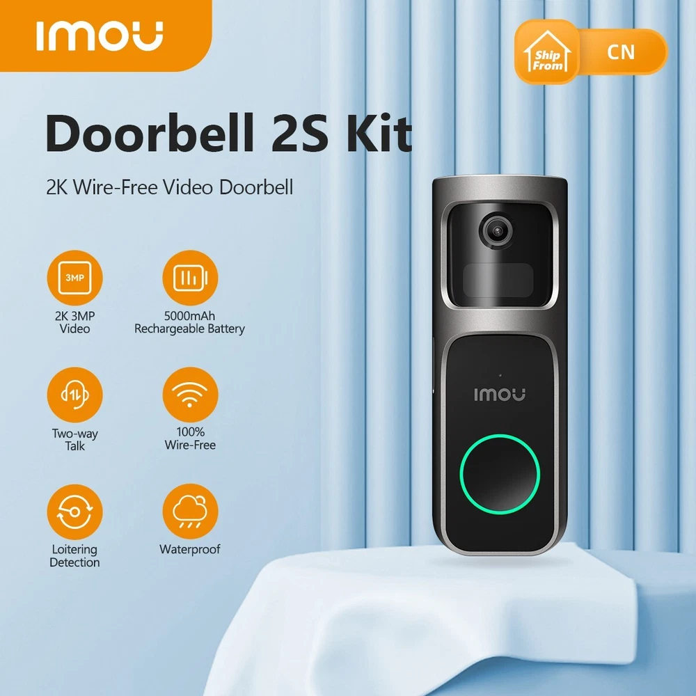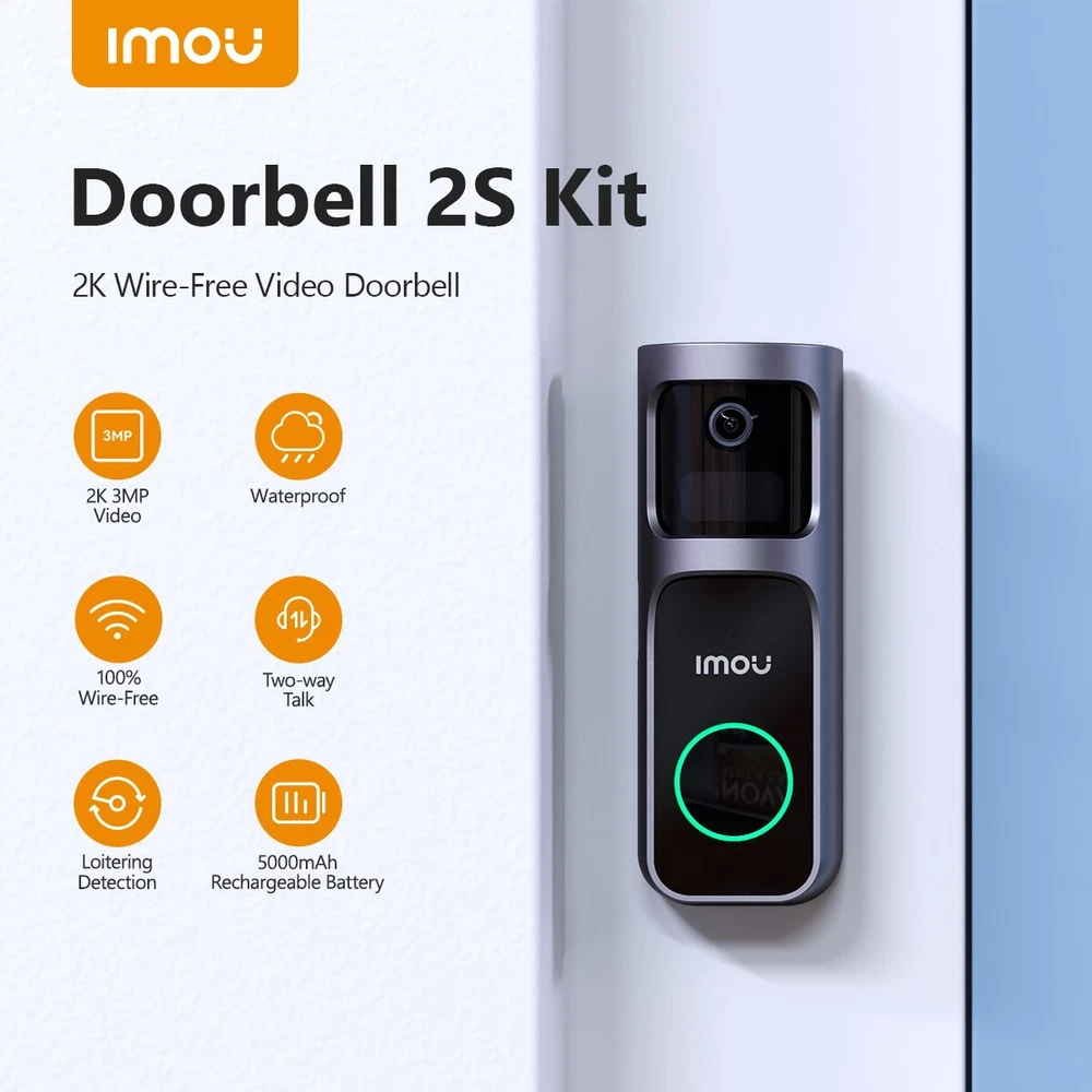 Description Doorbell 2S Kit 5000mAh Rechargeable Battery, last to 120 Days 2K 3MP Image | PIR & AI Human Detection | 5m IR Night Vision | Two-way Talk with Variable Voice | Weatherproof | 2.4GHz Wi-Fi Connection 3MP 2K Video| Rechargeable Battery | 100% Wire-Free | 30°Pan Lens and Smart Tracking PIR + Human Detection | Auto Power Saving Mode | Two-way Talk with Variable Voice | Loitering Detection Optional Hardwired Power Supply | Waterproof | Flexible and Secure Storage | Multiple Ringtones Available 2K 3MP Video with The Latest H.265 Compression • High quality sensors present crystal clear videos and recordings. Let you see clearly what is happening around your home, both day and night. • Reduce network and storage usage by 50% at the same video quality. 120 Days Battery Life The build-in 5000mAh rechargeable battery enables the doorbell last up to 120 days. • Fully charge in 2.5 hours (5V/2A, Type-C Port) • Work in standard model:15 recordings per day, each recording is 8 seconds • Battery life varies based on settings, usage & temperature Chime DS2S • Work with Chime, allowing you to know someone is knocking in any room. • The indoor chime works as a Wi-Fi extender, providing stable network for the doorbell. 30° Pan Lens & Wide-View Lens for better Smart Tracking ▶ Rotate the camera to view every corner of in front of the door, reduce blind areas. ▶ 4:3 aspect ratio is more suitable for corridor in front of the door. 166°D ultra wide angle Lens allows Doorbell 2S to capture more areas in front of the door. ▶ Support smart tracking the moving objects, check the full process during people passing by. ▶ Tilting doorbell bracket no need, easy to install. Excellent Night Vision Night vision mode provide black-and-white pictures even in complete darkness. The IR distance is up to 5m. Accurate PIR and AI Human Detection PIR & Powerful image processing technology quickly finds human targets in images and immediately sends a notification to your smartphone, allowing you to monitor what matters without receiving annoying false alerts. 0.3 seconds detection time to catch any movements when the doorbell detects someone approaching your door. Loitering Detection If loitering detection is enabled, you will be noticed when people staying in front of door after preset duration. It may help to reduce the frequency of notifications and remind you of more severe situations. Customizable Detection Setting • The detection settings include detection sensitivity, detection region, detection schedule and PIR detection range, which is between 1m~3m. • The settings are customizable to suit the environment in front of your door. Auto Power Saving Mode The auto power saving mode can help to keep the doorbell working in low battery condition automatically. In power saving mode, only event detections and doorbell call can wake up the camera, otherwise, the camera cannot wake up the camera or get the live-view. ♦ Low frequency trigger, battery life is about 120 days Standard Mode: 15 recordings per day, each recording is 8 seconds ♦ Medium frequency trigger, battery life is about 90 days Custom Mode: 20 recordings per day, each recording is 10 seconds *The above is PIR trigger recording, non-24-hour continuous video recording Full-duplex Two-way Talk with Variable Voice Two-way Talk with variable voice allows you to interact with visitors or dissuade unwelcome people, and protect your privacy. Customizable Quick Voice Reply Response without answering video calls. Up to 5 customizable quick voice messages can be chosen. Weatherproof Doorbell 2S is waterproof for outdoor conditions. Multiple Alarm & Ringtones Available Up to 10 different chime ringtones are available for event alarm & doorbell setting. Snooze schedules and volume can be set for every Chime DS2S. Battery Charging ▶ Step 1: Use a sharp-end object to remove the doorbell. ▶ Step 2: Charge the doorbell with a standard 5V 2A power adapter. Fully charge in 2.5 hours (5V/2A, Type-C Port) ▶ Step 3: When the indicator turns solid blue, the device is fully charged. Product Details What' s in the box? Doorbell*1 | Surface Mounting Bracket*1 Installation Position Map*1 | Chime*1 USB Charging Cable*1 | Extension Wire*2 | Jumper Wire*1 | USB Charging Cable*1 | 3M Glue*2 Quick Start Guide*1 | Screw Package*1 | Pin*1 | Wire Nuts*3 | Chime Plug*1 Specifications Q&A area