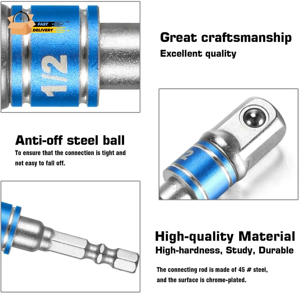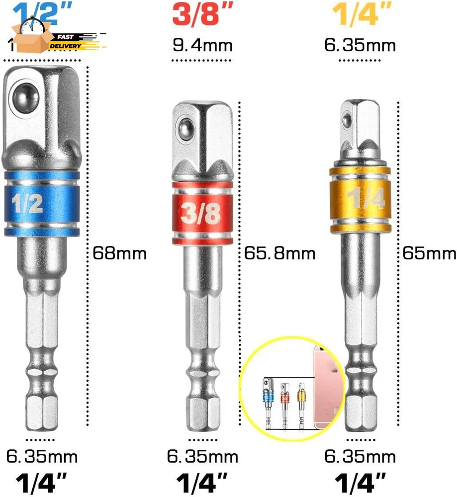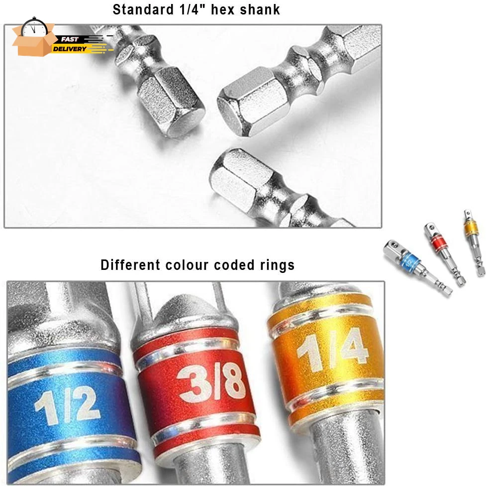 Store New Arrivals Add to Favorite View Feedback Contact Impact Grade Socket Adapter/Extension Set Turns Power Drill into High Speed Nut Description Item model number Impact Socket Adapter Set for Drill Part Number CBC3 Style 3pcs-colour Finish Polished Item Package Quantity 1 Color 3p*color Finish Type Polished Material Chrome Vanadium Steel Country of Origin China Batteries Required? No Compatible Fastener Range 0.25 inches Drive System Square Item Weight 2.39 ounces Batteries Included? No Number of Pieces 3 Is Discontinued By Manufacturer No Product Dimensions 1 x 0.5 x 0.3 inches Size One Size Package contains:3Pcs - 1/4" drive adapter, 3/8" drive adapter, and 1/2" drive adapter and each with a 1/4 inch hex shank driver socket wrench adapter set .1/4" 3/8" 1/2" Turns any power drill into a power nut driver Sturdy spring-loaded ball bearing holds sockets securely in place Sockets Snap-On Tightly and Won't Slip Off Uses: Attach these Versatile Extender Bars to any Powered/Cordless Drill Chuck or Impact Driver to turn it into a High-Speed Nut Driver – Useful for Automotive Mechanic Vehicle Repairs, Technicians, Handyman & Hobbyist Developments to use with sockets on Hardware/Tire Nuts, Lag Bolts, Hex Head Cap Screws at Home, Workshop Factory or Construction Site Multifunction: used in the installation of pneumatic screwdriver, electric screwdriver, pneumatic drill, manual screwdriver and other installation for the hexagonal tool .It is a good accessory for conversion.Provides versatility and convenience no matter which tool you chose to use. Great for the DIY, household maintenance, and most general repairs, not for industrial work. A great tool addition to any tool box set Durability: Quality is a guarantee with this 3 piece sturdy and durable solid steel set designed to withstand torque compression under most standard use situations. The exterior anti-weathering coating provides extra protection from damage against elements and substances such as oil and fluids that may come in contact with the extension bars during use with repairs such as in the automotive field Cool Tool for Men/Women: Drill socket adapter is a for mechanic, DIYer, handyman, welder. socket wrench set works great for all kinds of maintenance and projects: mechanic jobs, routine maintenance, home improvement, any light or heavy duty work, etc. Solid pieces of equipment that will work for every project you need them for. Good to give this socket drill adapter as gift or stocking stuffers for men, dad, husband, him on Christmas, Fathers Day, Birthday from wife, daughter, son, kids, friends About 1/4-Inch Drive Drill Socket Adapter/Extension Set Suitable for Quick Change 1/4" Chuck Systems or Directly into Drill Chuck. Turns any power/cordless drill into a power nut driver. Handy for Fast Driving of Nuts, Bolts and Fixings, etc. Spring Loaded Ball Bearing on Head Holds Sockets Securely. Widely used in home DIY, carpentry, auto parts, specializing in machine repair and so on. Specification : Weight: Approx.100g All Sockets Standard 1/4" Hex Shank Key Features: 1. Adapts sockets to power drills and drivers 2. Detent ball for secure socket retention so sockets snap on tightly and won’t slip off 3. 1/4-inch hex shank prevents stripping during high speed drill operation 4. Super strong heat-treated chrome vanadium steel for normal and impact use 5. Sandblasted finish 6. Converts all power drills into speedy socket drivers 7. Use with a hand screwdriver handle or battery/power tool 8. Color coded for easy recognition Size: 1/4 * 1/4 * 65mm length -- 1/4 " shank can be converted to 6.35mm square head 3/8 * 1/4 * 65mm length -- 1/4 " shank can be converted to 9.4mm square head 1/2 * 1/4 * 72mm length -- 1/4 " shank can be converted to 12.6mm square head Package Included: 1 x (1/4" hex shank to 1/4" socket)Socket Adapter 1 x (1/4" hex shank to 3/8" socket)Socket Adapter 1 x (1/4" hex shank to 1/2" socket)Socket Adapter ABOUT US We offer the best prices around on high quality products. Our E-store includes media such as books, movies, music and games while offering electronics, toys, sporting apparel, clothing, tools, general home, garden items and more. SHIPPING We are always working hard to ensure your package arrives as soon as possible. Please understand that some factors like weather, high postal traffic, and the performance of shipping companies are outside of our control. We offer free shipping to the lower 48 states and ship within 2 business days of payment, usually sooner. We do not accept P.O. Boxes. Please provide a physical address. For shipping outside of the continental USA, we only use eBay's Global Shipping Program.The item is shipped to KY and then sent to the rest of the world. International customers are responsible for all duties and taxes. Continue to check out in order to calculate costs for shipping the item to your country. Messages regarding eBay's Global Shipping Program MUST be directed at eBay EXCLUSIVELY. RETURNS We offer a 30-Day Return Policy on items which you are not completely satisfied with. You have the option for a full-refund or an exchange of the item. No returns are available on items shipped outside of the USA. PAYMENT We accept PayPal. CONTACT US This page content is yet to come Please ad us to your favorite seller and visit again later Thank You CUSTOMER SATISFACTION We try our very best to make sure every customer is completely satisfied. If there's a problem, message us! We're happy to help. WE ACCEPT Copyright © 2021 AutoDS. | All Rights Reserved