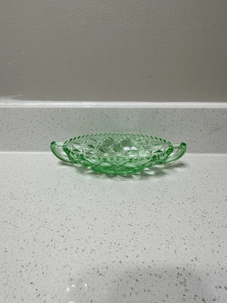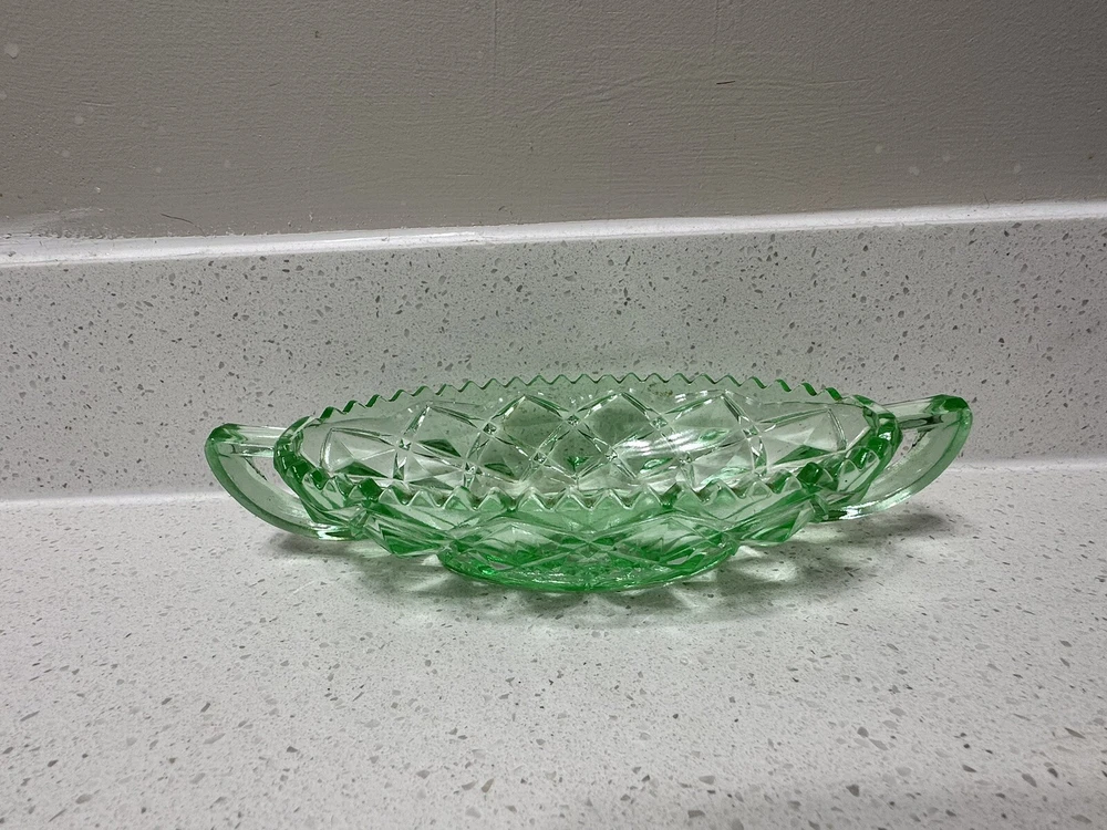 Imperial Glass- Ohio Diamond Block Green Uranium Vaseline Relish Pickle Dish
