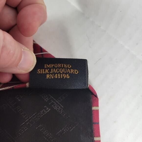 This product is a Ferrell Reed Imported Argyle Plaid Professional Dressy Silk Jacquard Tie for men. It is in a regular size and the color is red. The tie is designed for professional and dressy occasions.