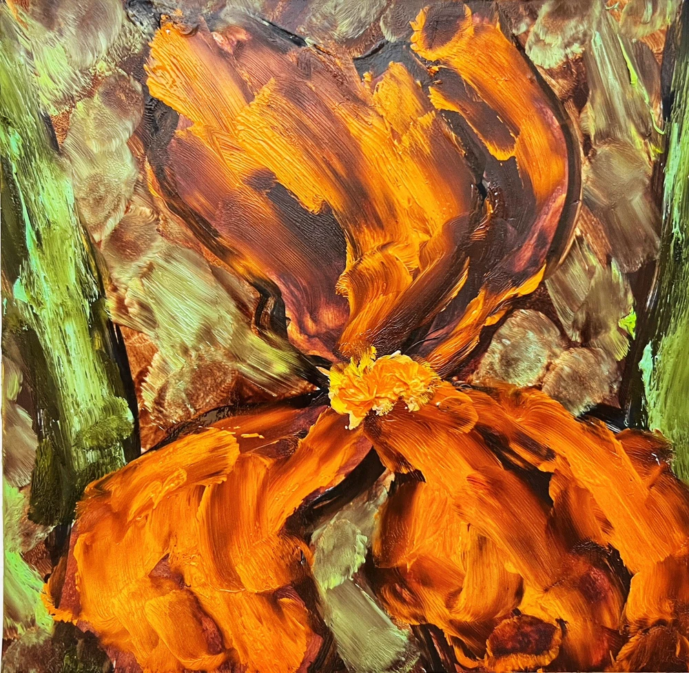 Impressionist Iris flower original oil painting Abstract Modern floral wall art